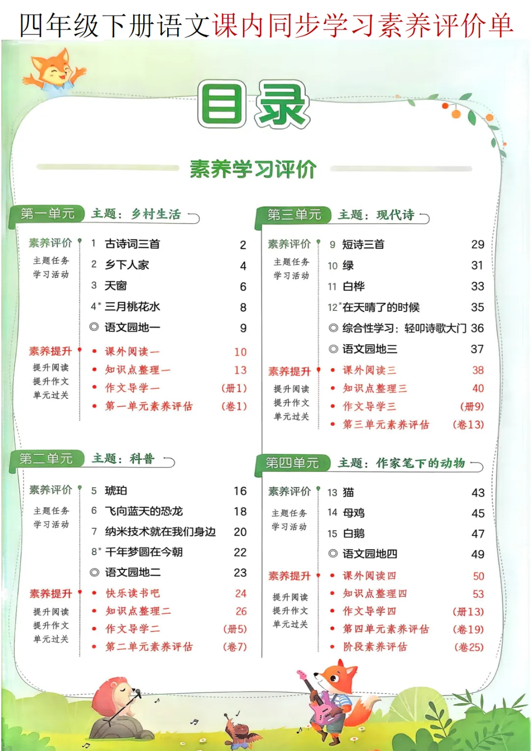 【免费下载】四年级(下)语文 26春课内同步学习素养单,PDF电子版,共105页,先保存,以免资源失效