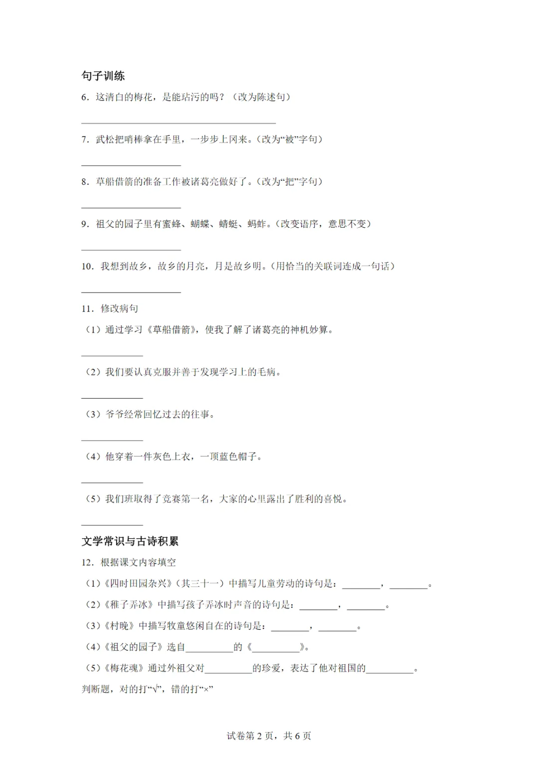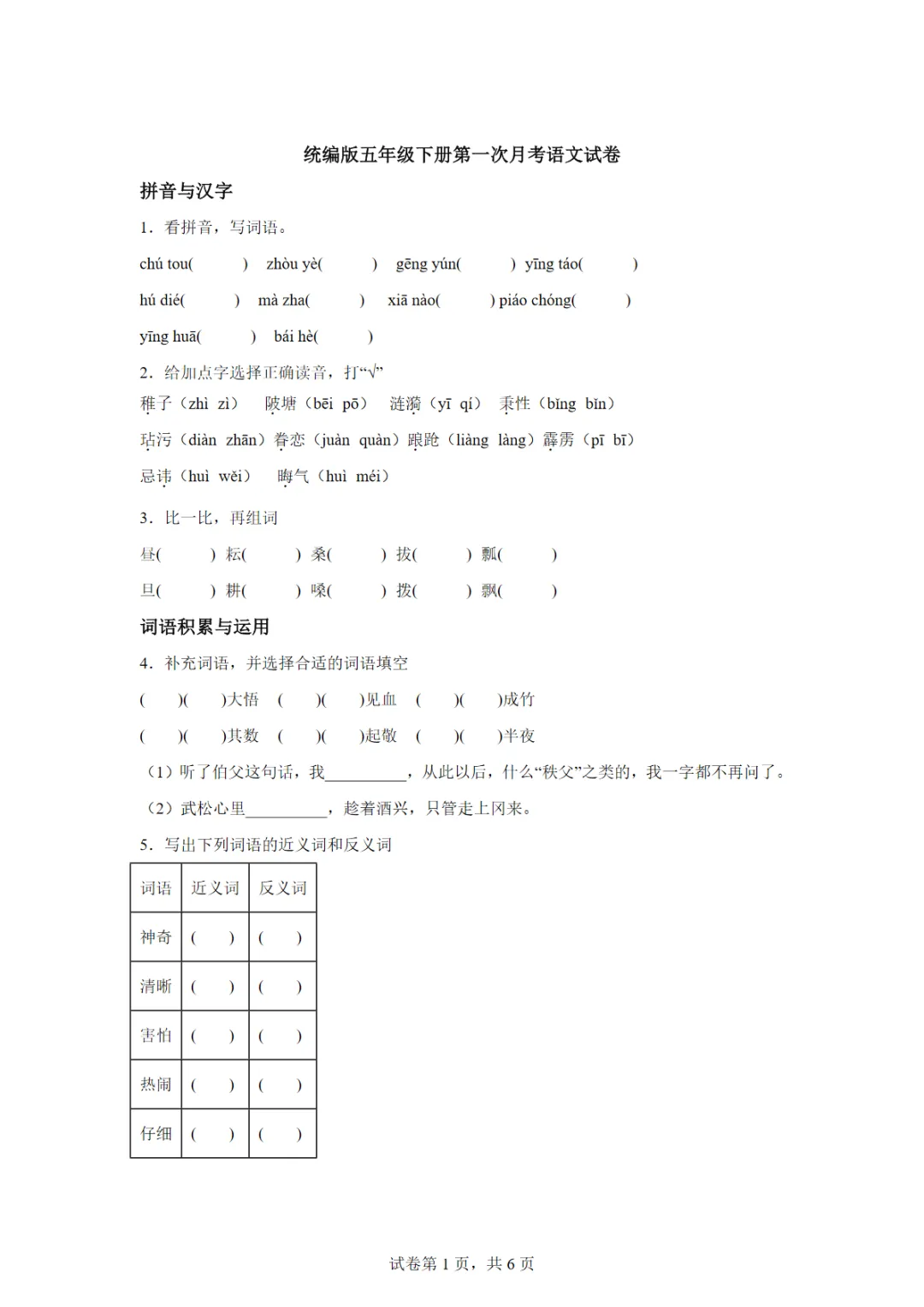 【免费下载】2025-2026学年统编版五年级下册第一次月考语文试卷,PDF电子版,共15页,先保存,以免资源失效