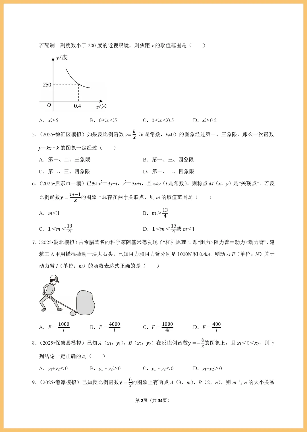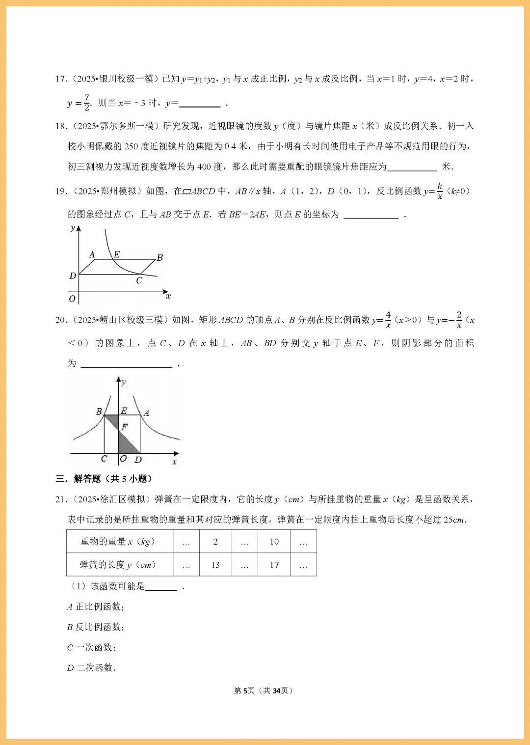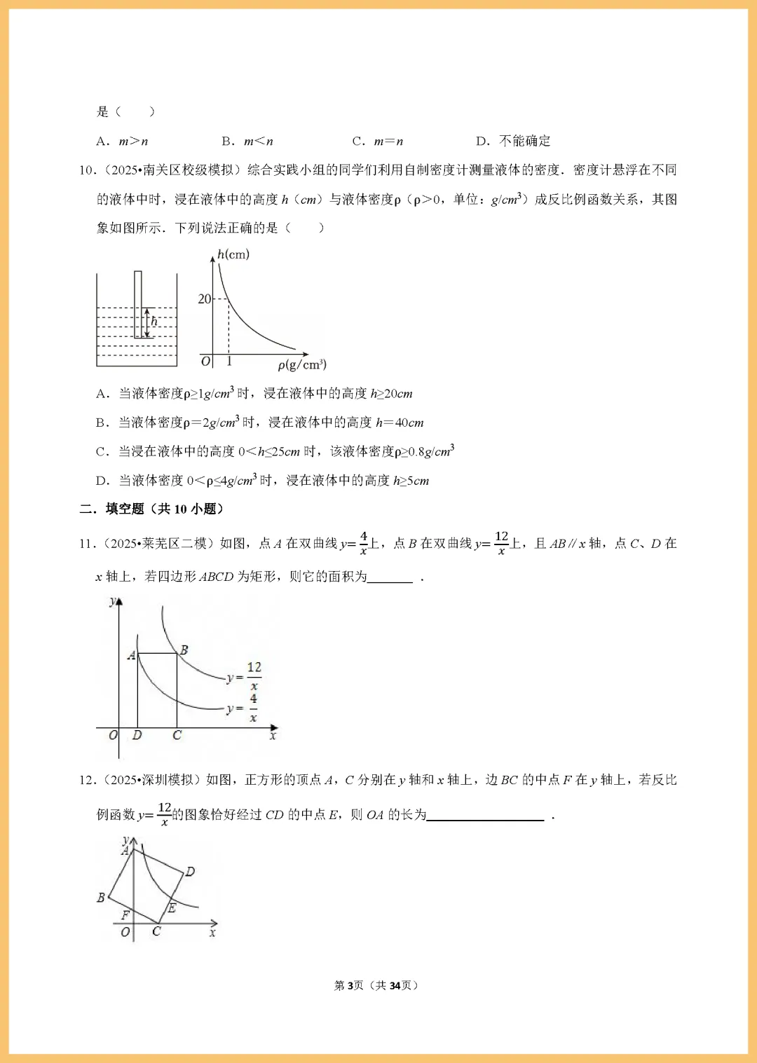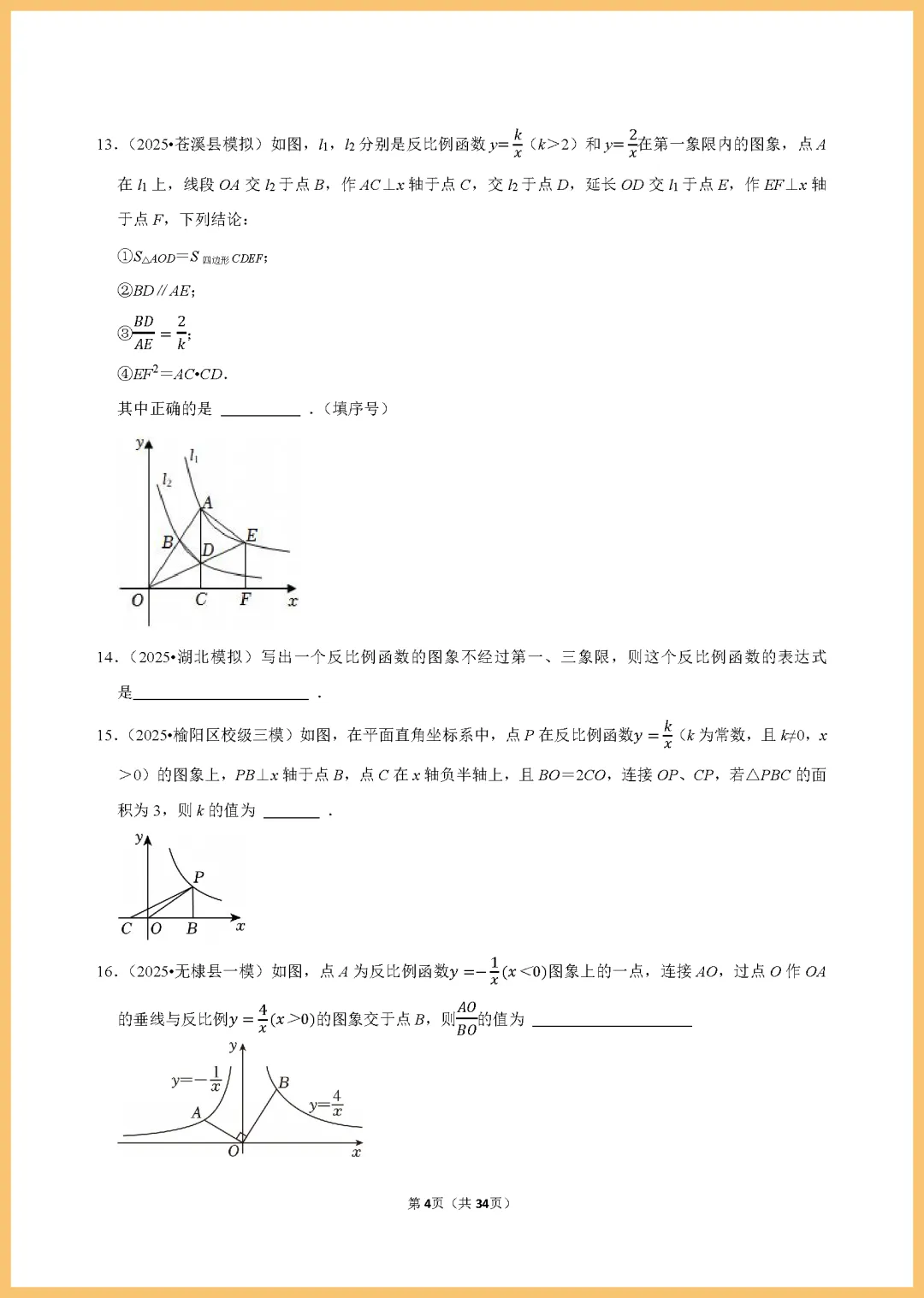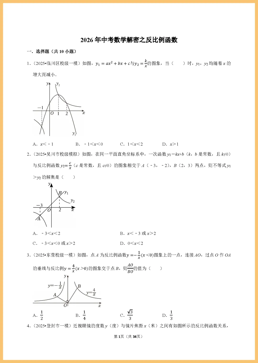 各位家长注意啦!这份2024版中考数学一轮复习《反比例函数专项练习》来啦,专为初三学子打造,整整34页干货满满。资料紧扣考纲,涵盖图像性质、k值几何意义及综合应用等核心考点,通过典型例题与变式训练,帮助孩子梳理知识盲区,掌握解题技巧,轻松攻克压轴难题。想让孩子在中考数学中稳拿高分?赶紧下载打印,让孩子每天练一练,查漏补缺,冲刺名校不再难!