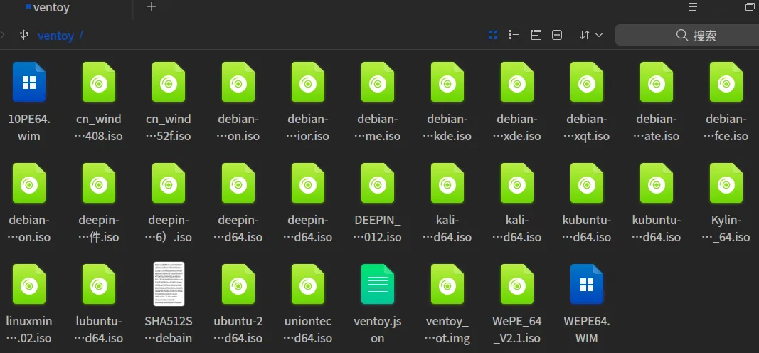 不管你是想装 Windows、Ubuntu、Deepin,还是冷门的 Linux 发行版,只要把对应的 ISO 镜像复制到 Ventoy U 盘里,开机启动就能选,不用每次都换 U 盘、重新烧录。
