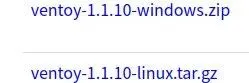下载对应系统的 Ventoy 安装包:官网就能下,Windows 是 .zip包,Linux 是.tar.gz包,解压就能用,不用安装。