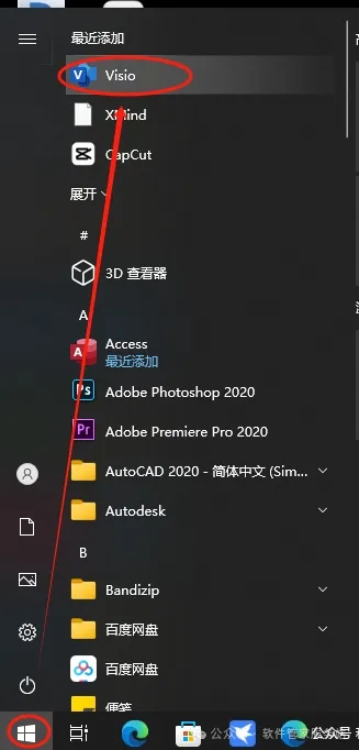 第七步:软件安装好后,在桌面不会创建快捷方式,需要在电脑,开始,找到这个visio,打开。