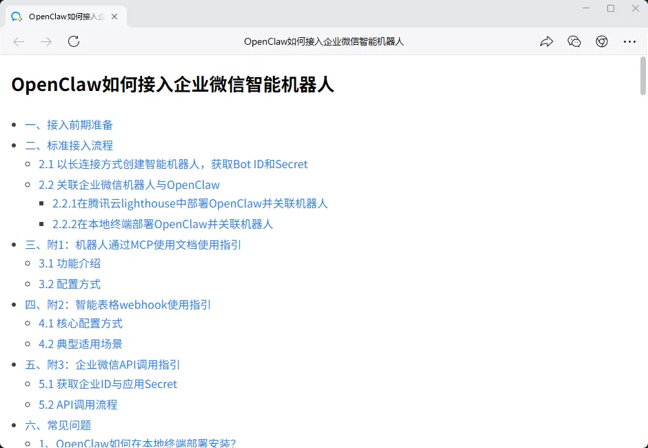 企业微信是我的主要工作平台。OpenClaw 的企业微信技能让我实现了: