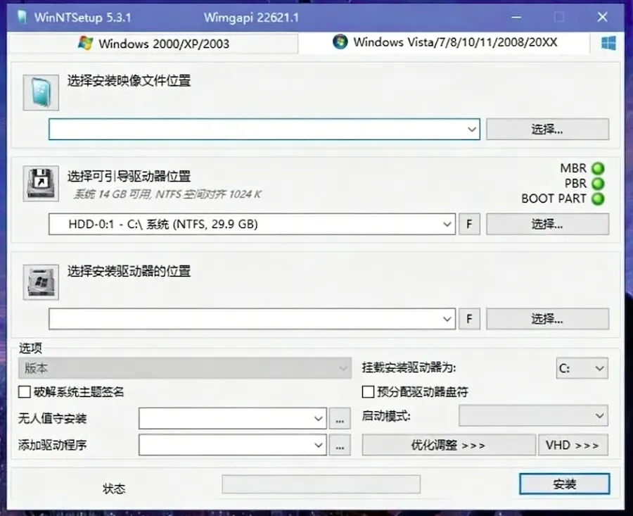 • 方法B:使用“Windows安装器”(WinNTSetup)