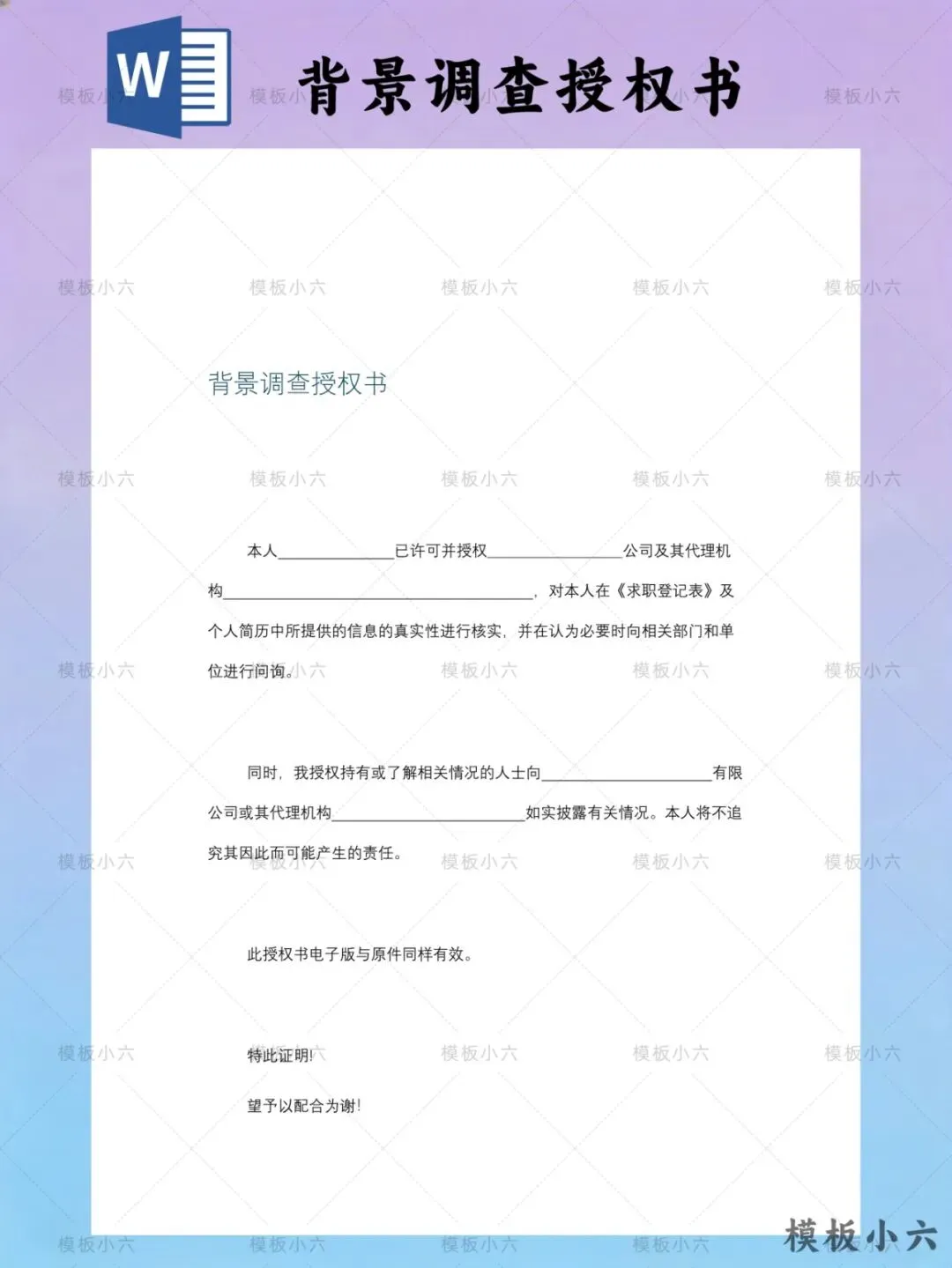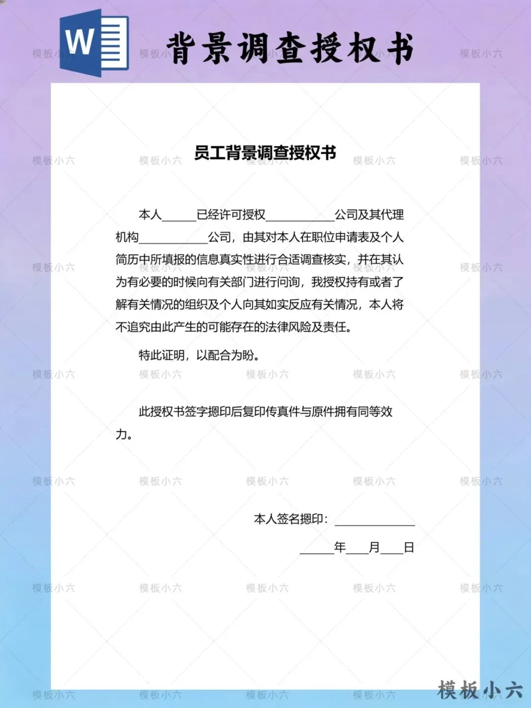 #背景调查授权书 #Word模板 #可编辑模板 #入职手续 #公司文档 #办公模板 #打印即用 #职场工具 #模板分享 #文档下载