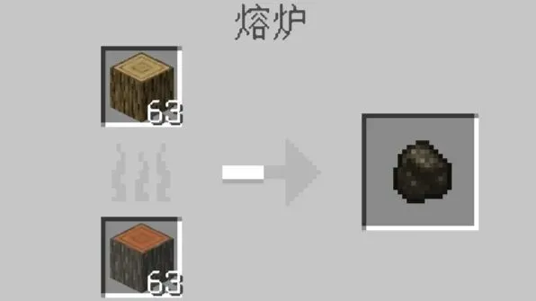 - 原木→熔炉→木炭(1原木=1木炭,燃烧同煤炭,可当燃料+合成)