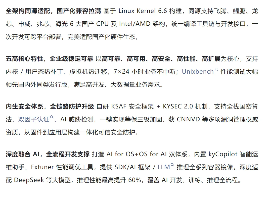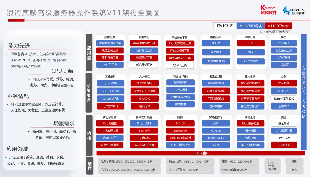 ARM64 版(飞腾、鲲鹏):https://iso.kylinos.cn/web_pungi/download/cdn/2r9DfSBgAkQu4atRG3zFdnIshlTbVCPo/Kylin-Server-V11-2503-Release-General-20250715-ARM64.iso X86_64 版(海光、兆芯、AMD64):https://iso.kylinos.cn/web_pungi/download/cdn/kz4Ju6NbSg7DUA9mlf5M2rqZeBRat1vC/Kylin-Server-V11-2503-Release-General-20250715-X86_64.iso 龙芯版(LoongArch64):https://iso.kylinos.cn/web_pungi/download/cdn/HsNdCbacX6gEiS2UvTFf8uqQAkI0Ohyz/Kylin-Server-V11-2503-Release-General-20250715-LoongArch64.iso