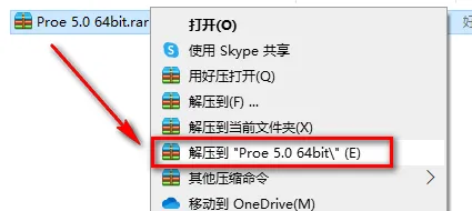 7.鼠标右键解压到“Proe 5.0” 注:安装包所在路径,不能有中文