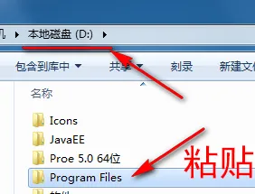 9.粘贴到该磁盘的根目录下,比如说我的在D盘,那么我就粘贴到D盘下,粘贴完后双击打开【Program Files】文件夹