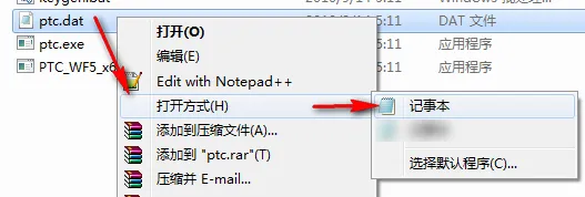 12.选中ptc.dat鼠标右键,打开方式,选择“记事本”