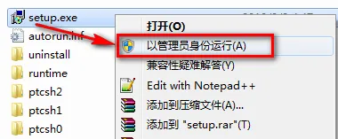 15.在解压出的文件夹中找到setup,鼠标右键,选择“以管理员身份运行”