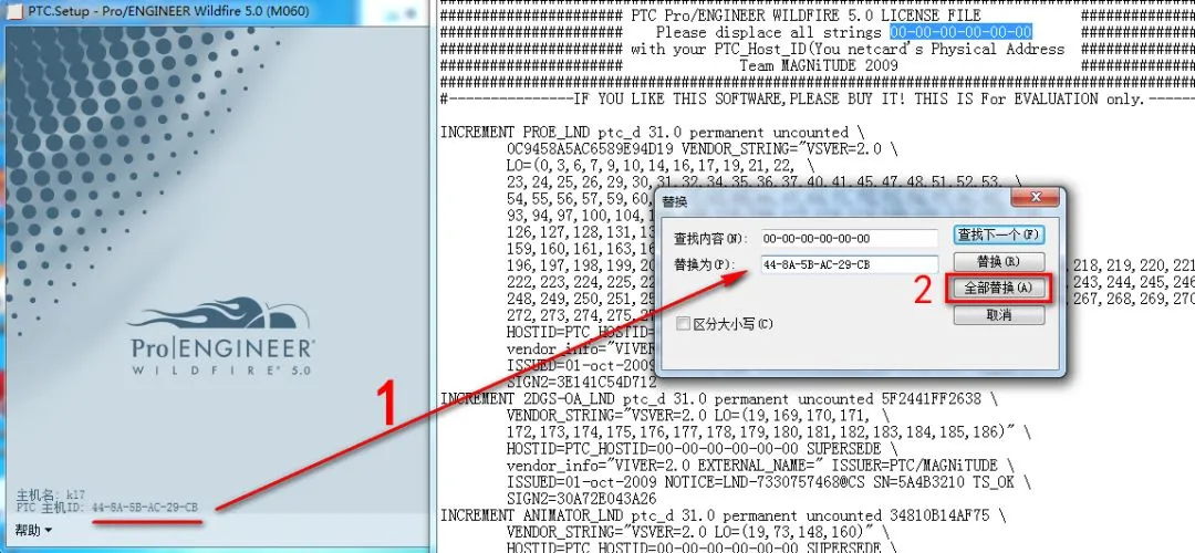 16.将PTC主机ID手动输入到替换内容栏,点击“全部替换”
