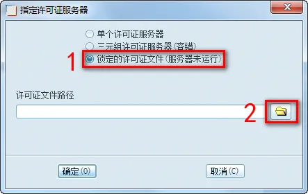 27.选择“锁定的许可证文件(服务器未运行)”,点击文件夹图标