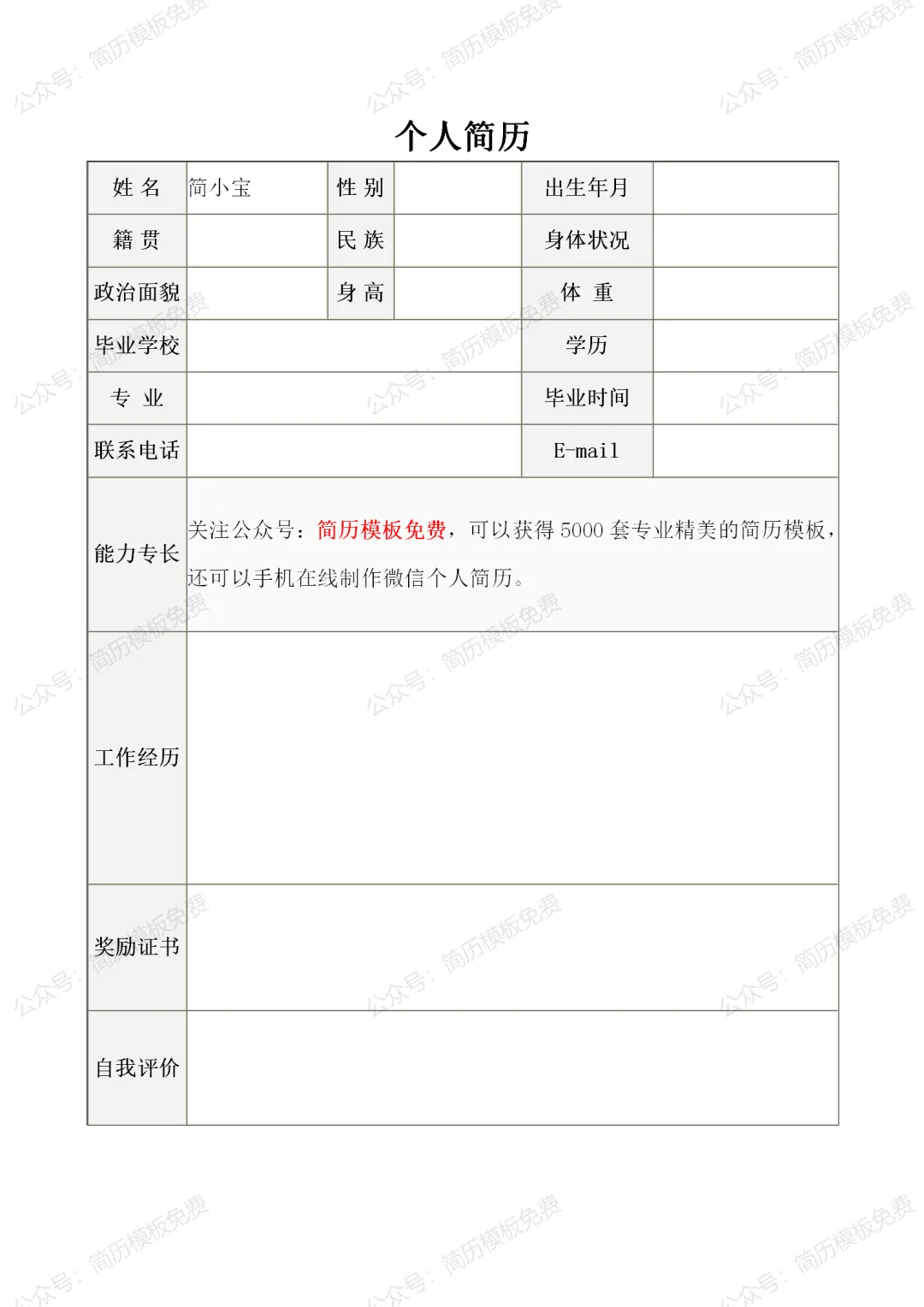 我们提供:IT/互联网、金融行业、房地产/建筑、医疗/化工、机械/电子通讯、采购/贸易、财务/HR,医生/护士,销售,教师,会计等各类简历表格式模板免费下载资源,不仅适用于实习生/应届生,也适合有工作经验的求职者。我们不仅提供求职简历模板,还可以手机在线制作个人简历。