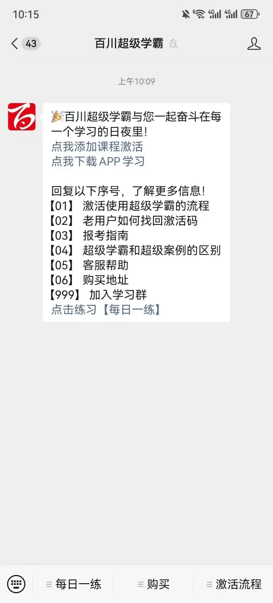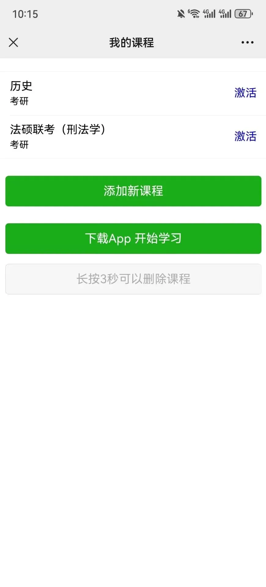在公众号右下角点击“添加课程”,选择你需要学习的考试课程(添加即可,不需要激活)。