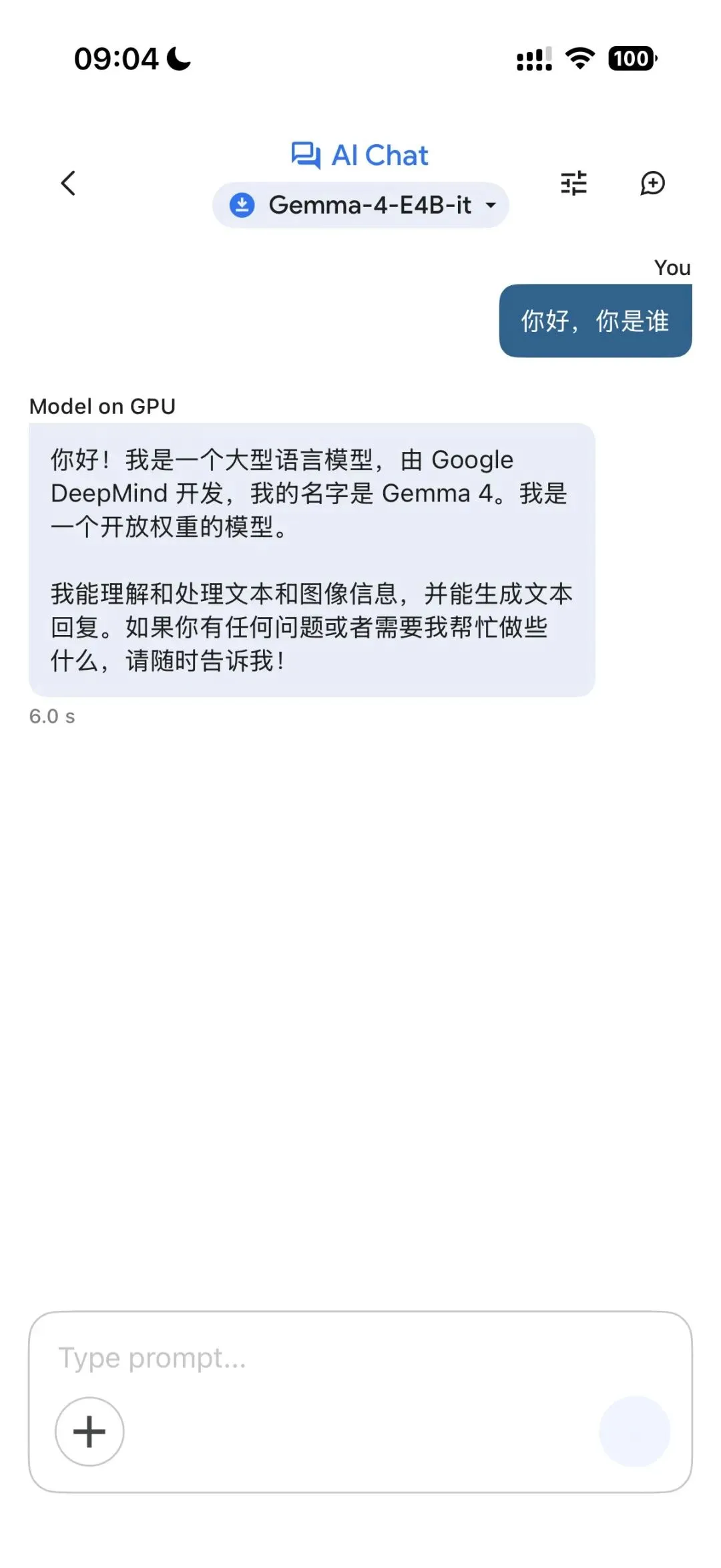 说明,第一:确实调用的本地SOC运算能力;第二:手机跑E4B会遇到性能瓶颈问题,有些许吃力。
