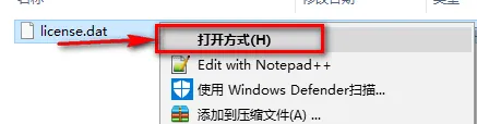 11.选中lincense鼠标右键,点击“打开方式”