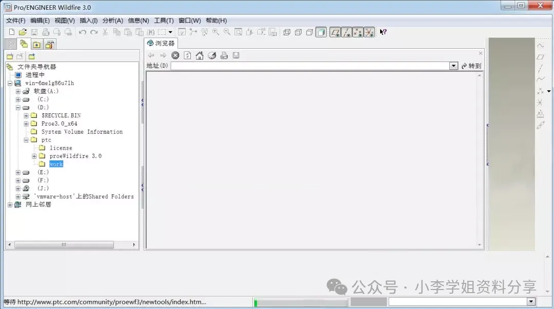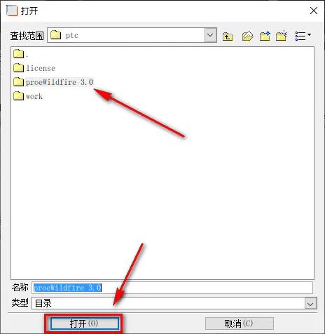 23.找到ptc文件夹中的【proeWildfire 3.0】文件夹,点击“打开”