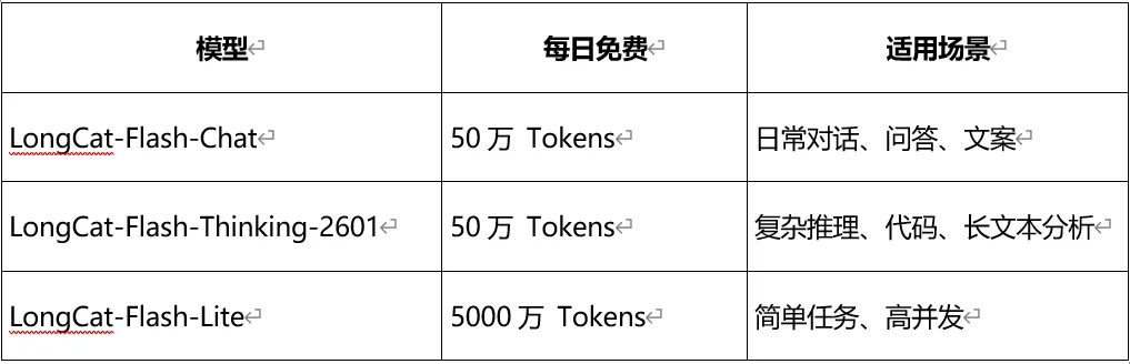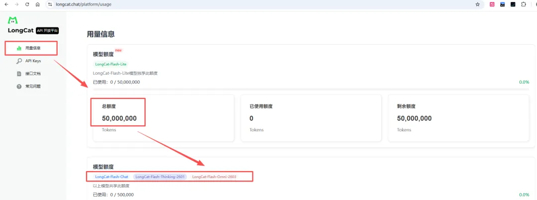 查看额度用量查看地址:https://longcat.chat/platform/usage