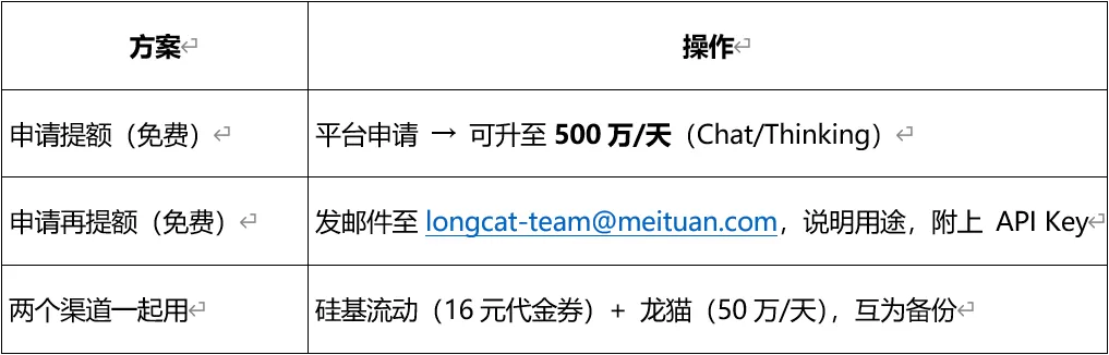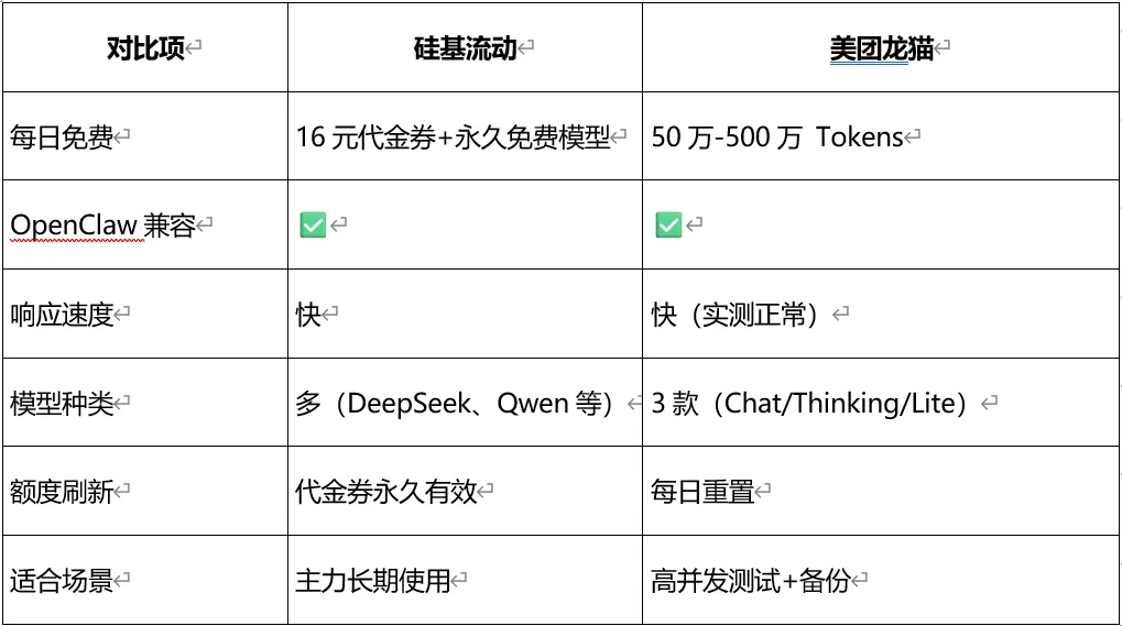 这篇文章的所有步骤我都实际走过,确认可行。硅基流动 + 美团龙猫,你现在有两个免费渠道可以给 OpenClaw 用了。