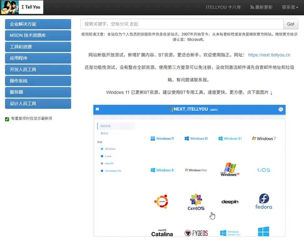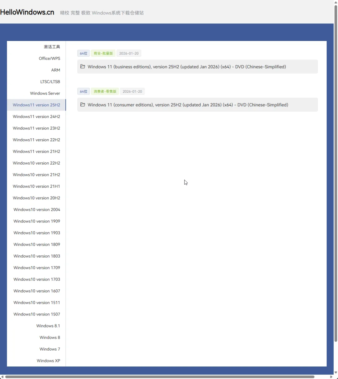 界面非常简洁,直接整理了各版本(含各年度更新)直链,适合快速查找。主任经常上这儿下载。