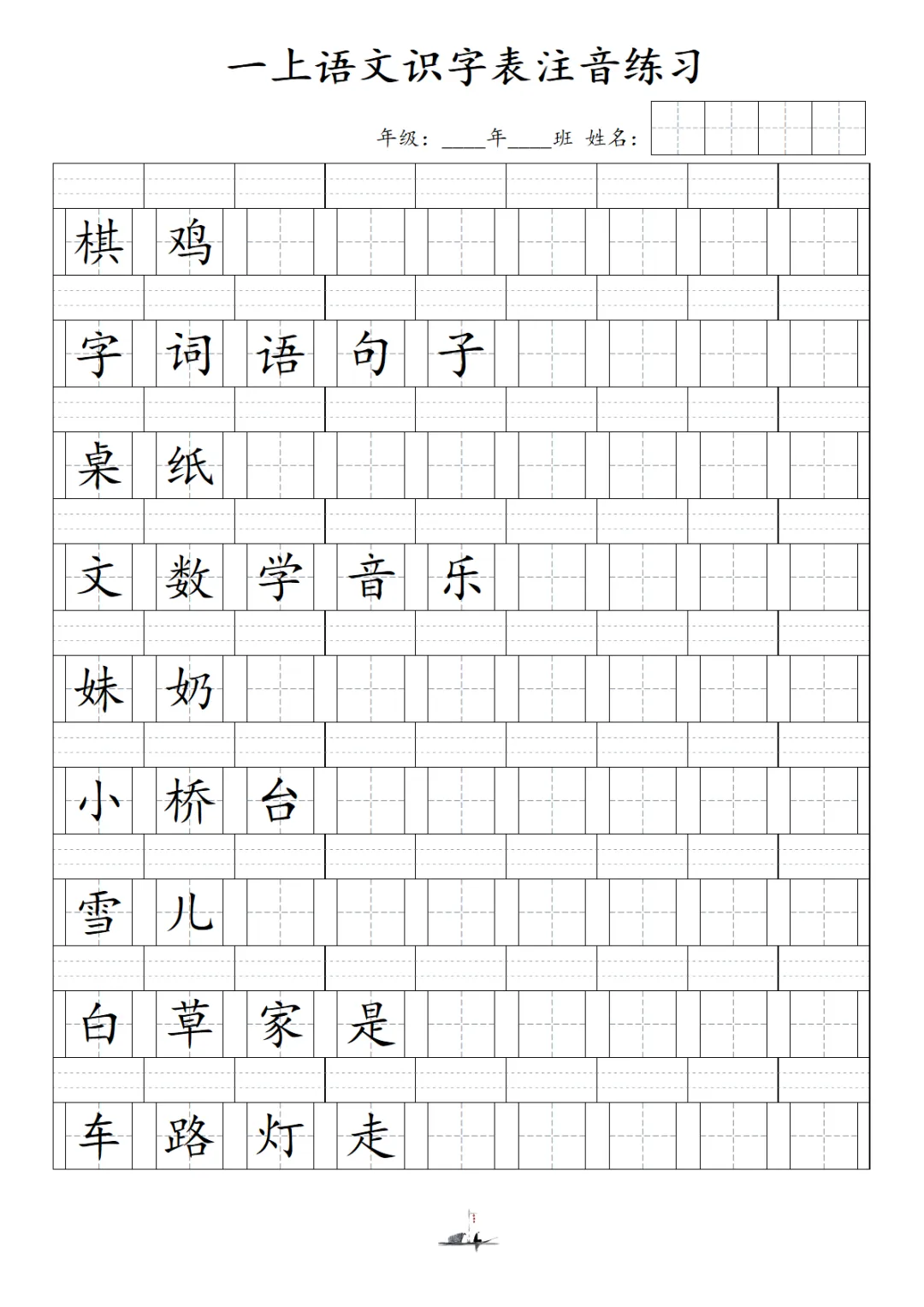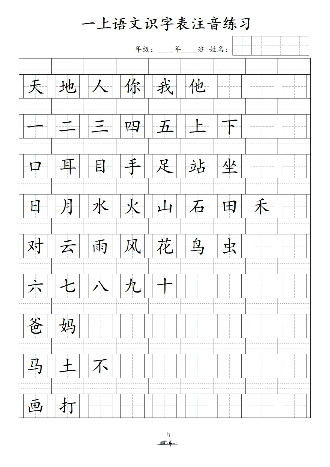 一上语文识字表注音练习(新)