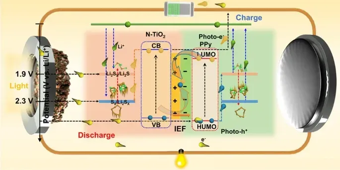 92. Ultrafast Sulfur Redox Dynamics Enabled by a PPy@N-TiO₂ Z-Scheme Heterojunction Photoelectrode for Photo-Assisted Lithium–Sulfur Batteries (ARTICLE)