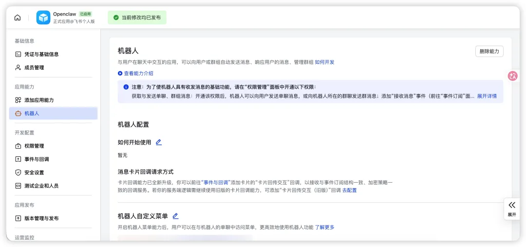 4.1 飞书机器人创建配置飞书接入