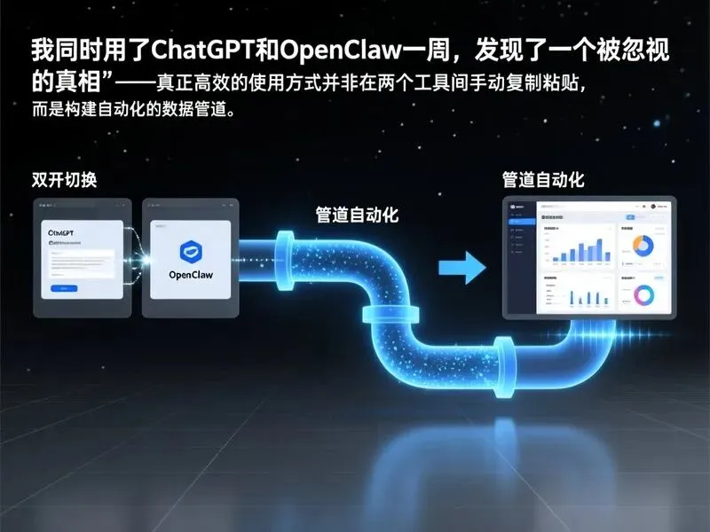 同时用ChatGPT和OpenClaw一周,我最大的收获不是掌握了两个工具,而是理解了工具组合的本质是流程设计。单个AI工具可以帮你提速,但多个工具的无序堆砌只会制造混乱。真正的高效来自于清晰的任务分工、标准化的交接流程,以及对Token成本的清醒认知。