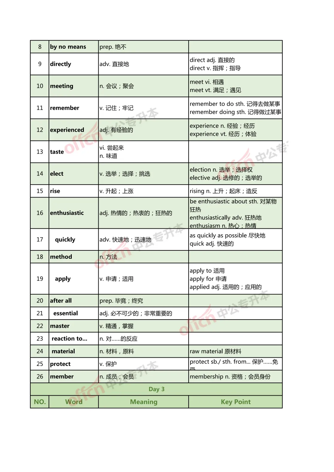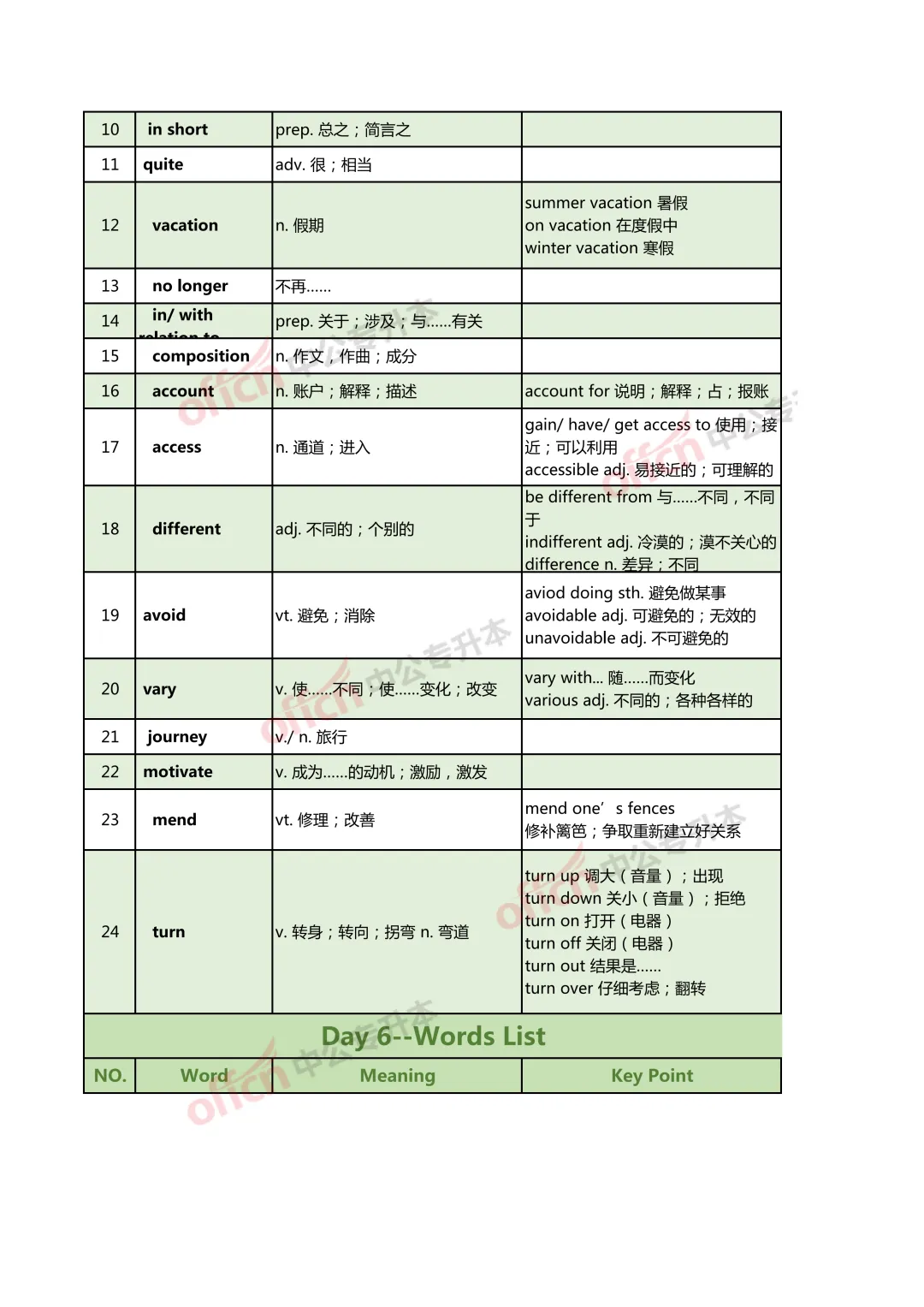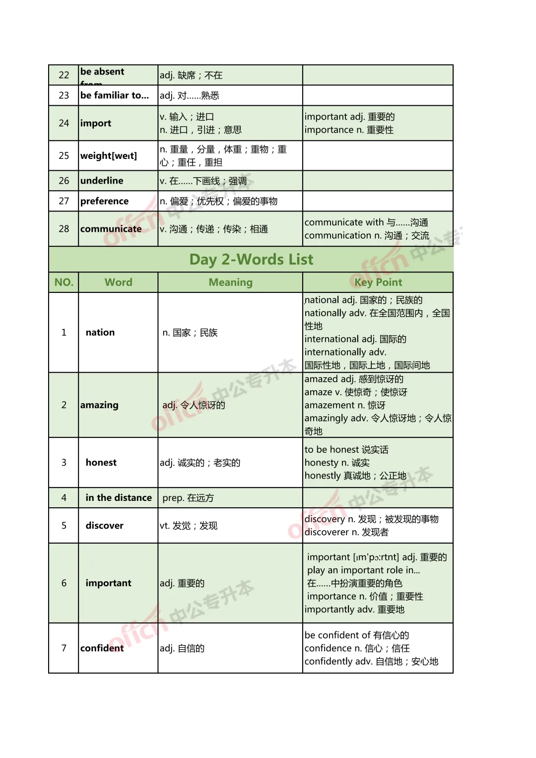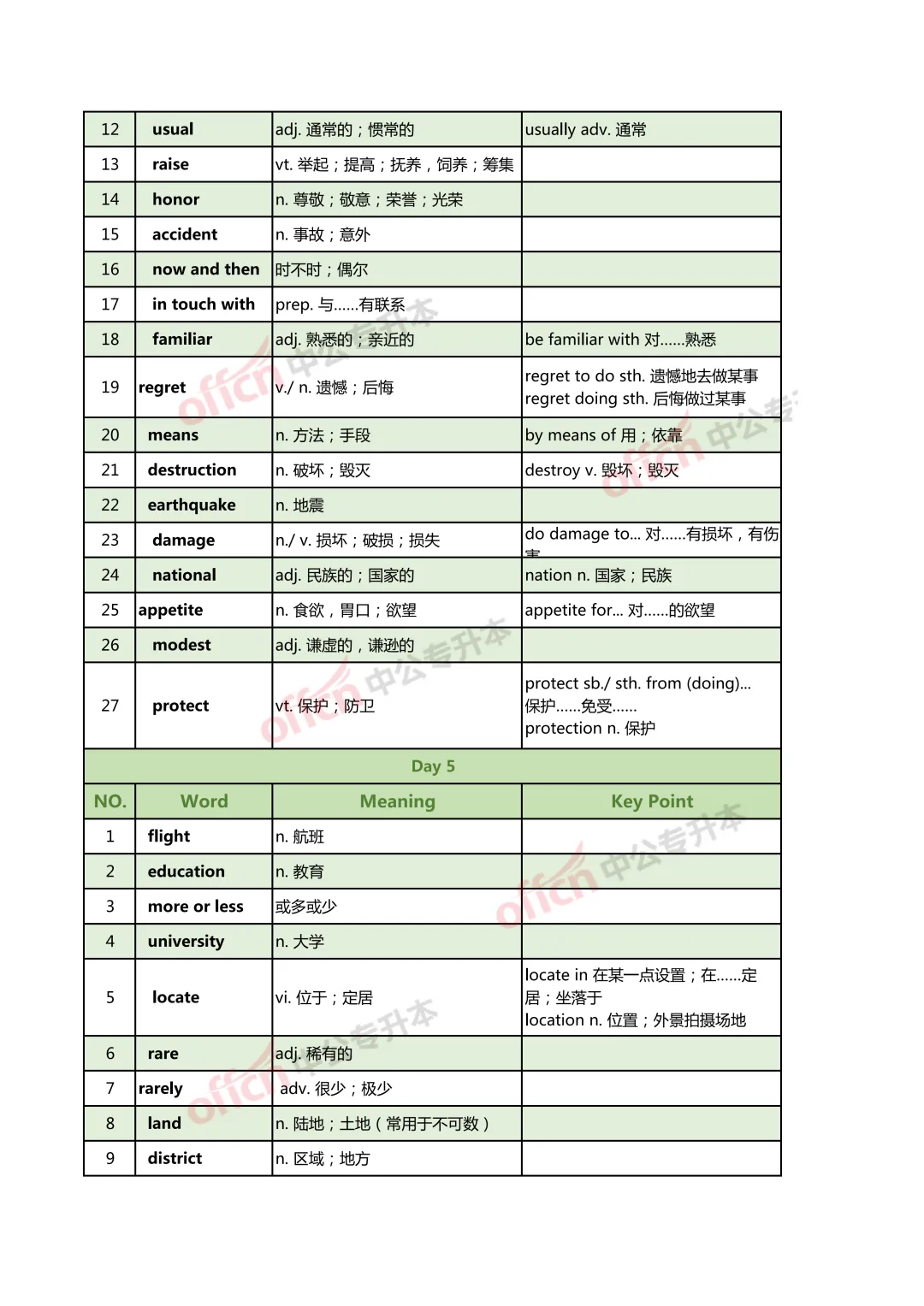 专升本最后复习阶段要不要继续背单词?这是最近很多考生在问橙子的,在这要说的是,你一定要坚持去背单词哦,词汇量的多少与你英语成绩有很直接的关系,特别是阅读理解题、翻译题、写作题,所以在这给大家分享一个最后15天可以用到的专升本英语核心词汇15天速记表↓
