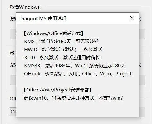 并且激活windows和激活office分别都有多种激活方式:其中KMS是激活180天,到期后可以续期;HWID是永久激活,激活一次可以一直使用;XCID也是永久激活,只不过激活的过程用时比较长;KMS4K为激活到4083年,这也算是一种永久激活的方式了;ohook是office的永久激活方式。