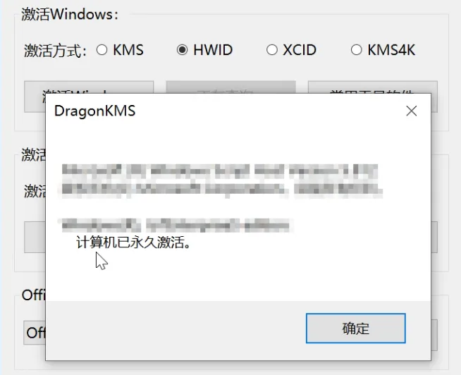 如果你需要激活windows,这里建议选择HWID,然后点击激活按钮,等待片刻即可完成。