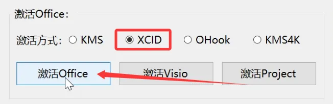 然后在工具中选择xcid,点击激活office,等待激活结束。