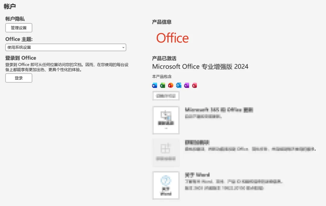 打开office办公软件,在账户中就可以查看到已经处于永久激活状态了。