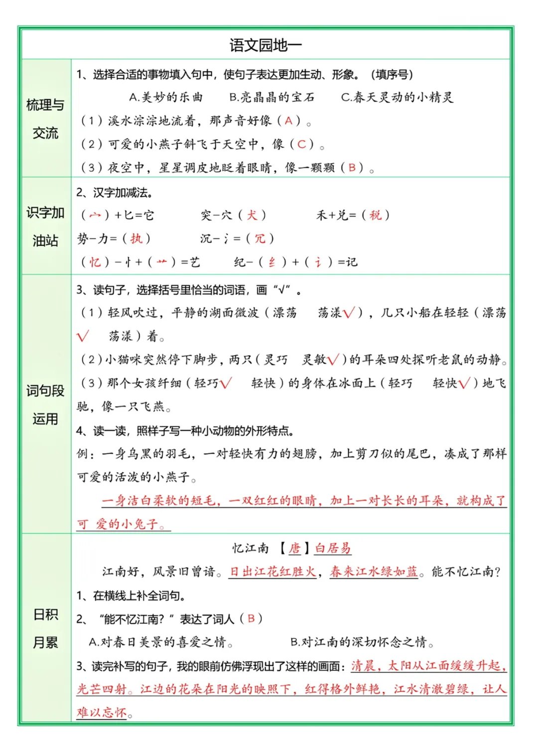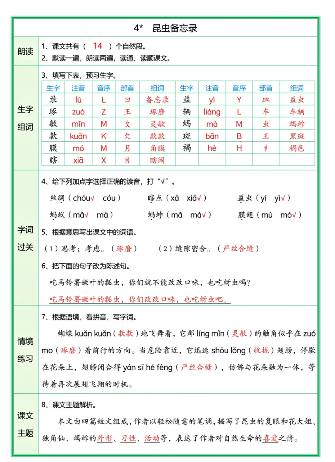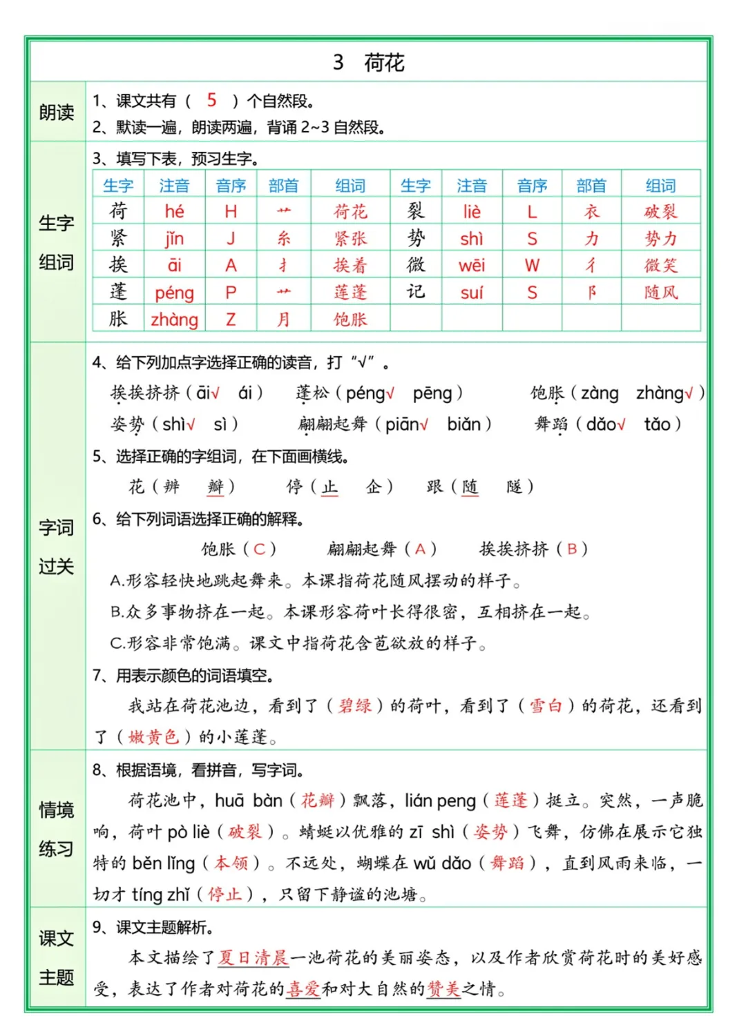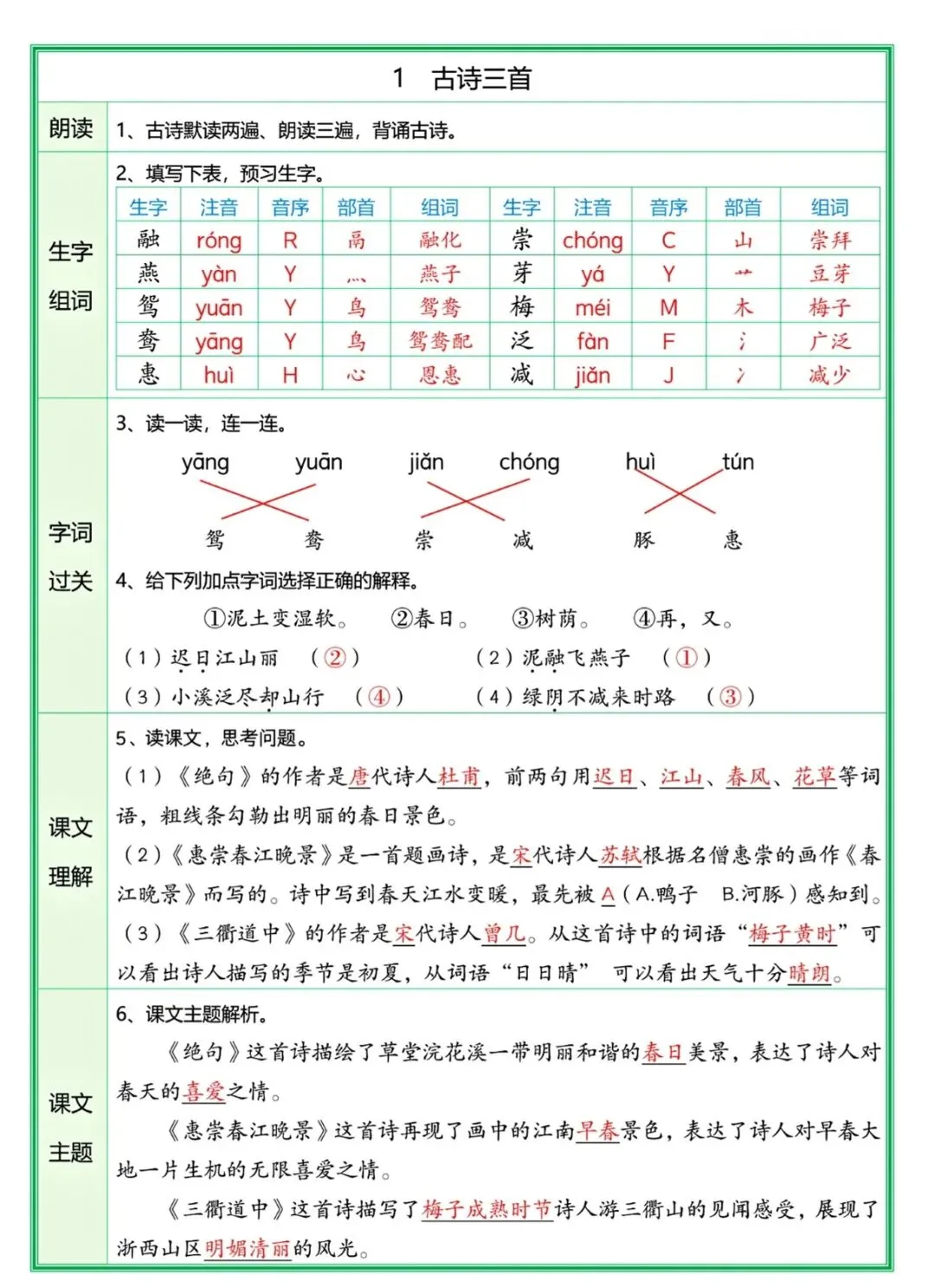 三年级(下)语文 每课预习单(解析版)