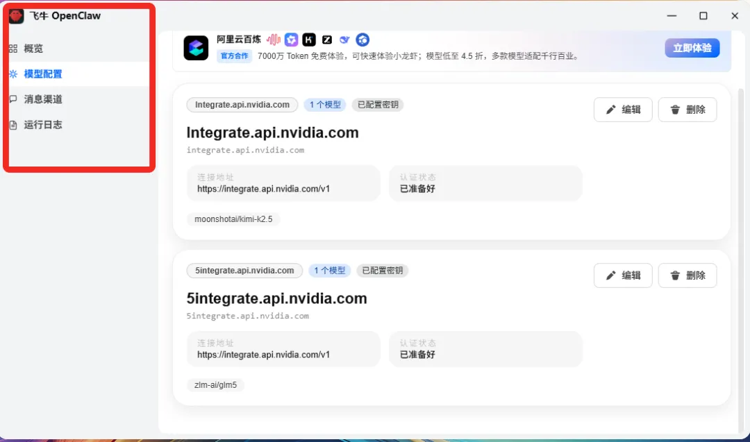 无论是从模型的添加,还是消息通道的添加都是非常简单。全面都是图形化的。不需要任何代码。这点是要给飞牛团队点赞的。