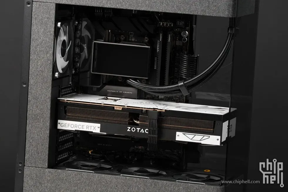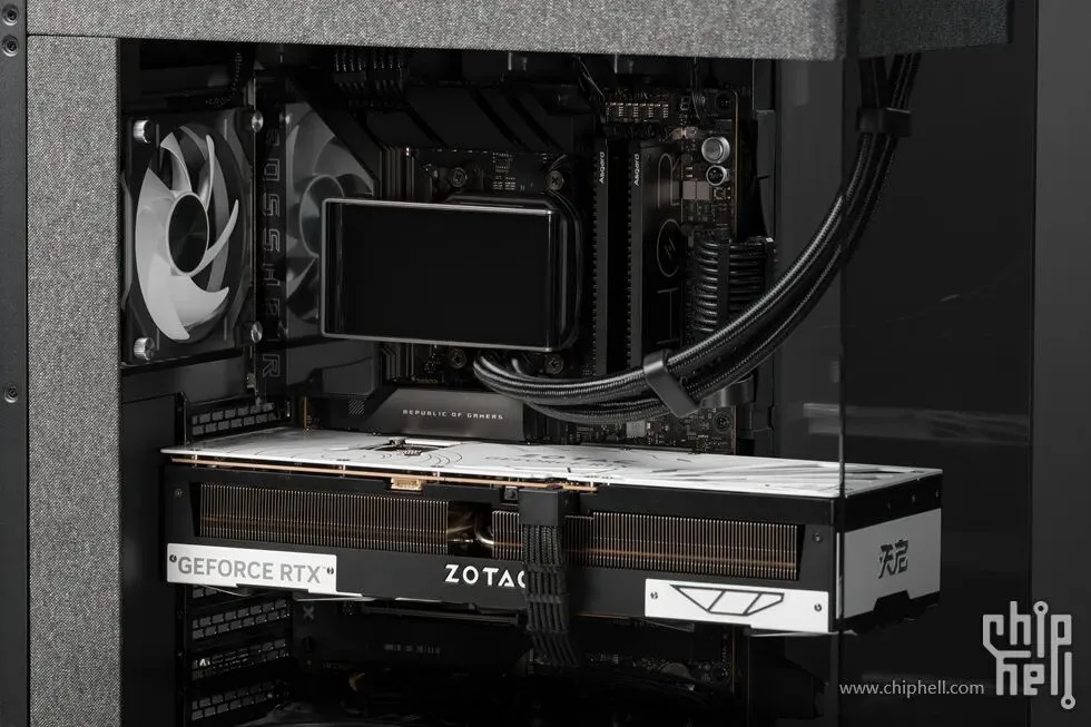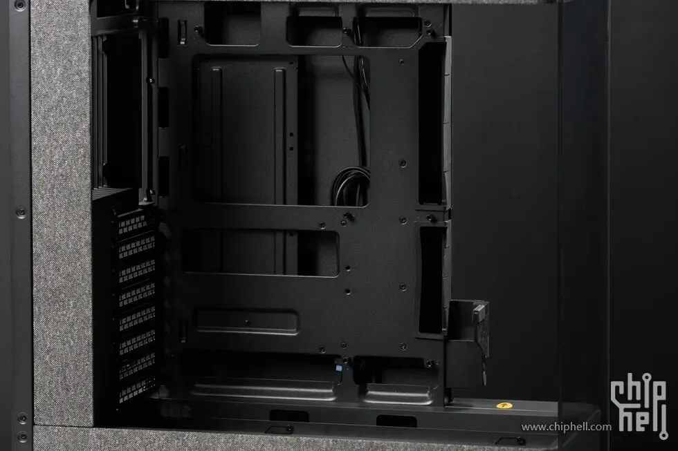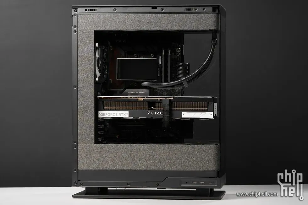 机箱预装了显卡支架,金属拉丝件同样拥有十分强的设计感
