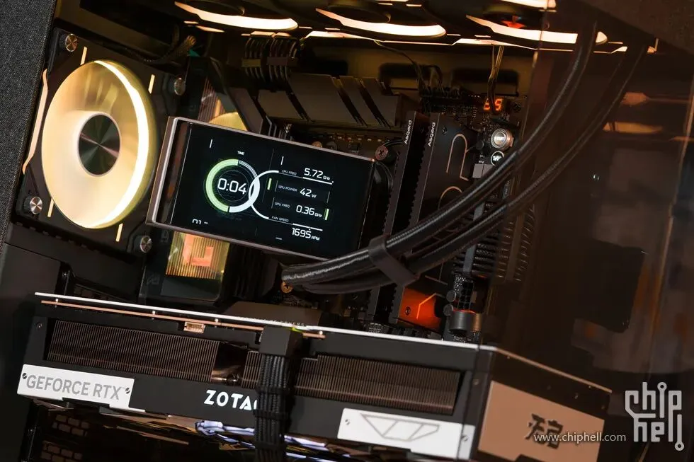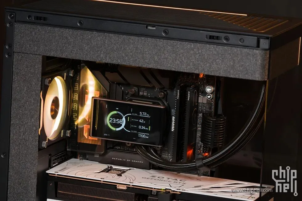 拿出本体,全黑风格设计,一眼就看到了硕大的4,5英寸全视角大屏幕,泵头采用三相六槽四极马达及FOC磁场定向控制技术,噪音〈21db(A)铜底铲齿散热面积较上一代水泵提升25%,解热功耗提升至300W4Pin PWM调节水泵转速,精准满足不同场景散热需求核心马达甄选陶瓷轴承与轴芯,耐磨、耐高温、长寿命,MTBF高达10万小时