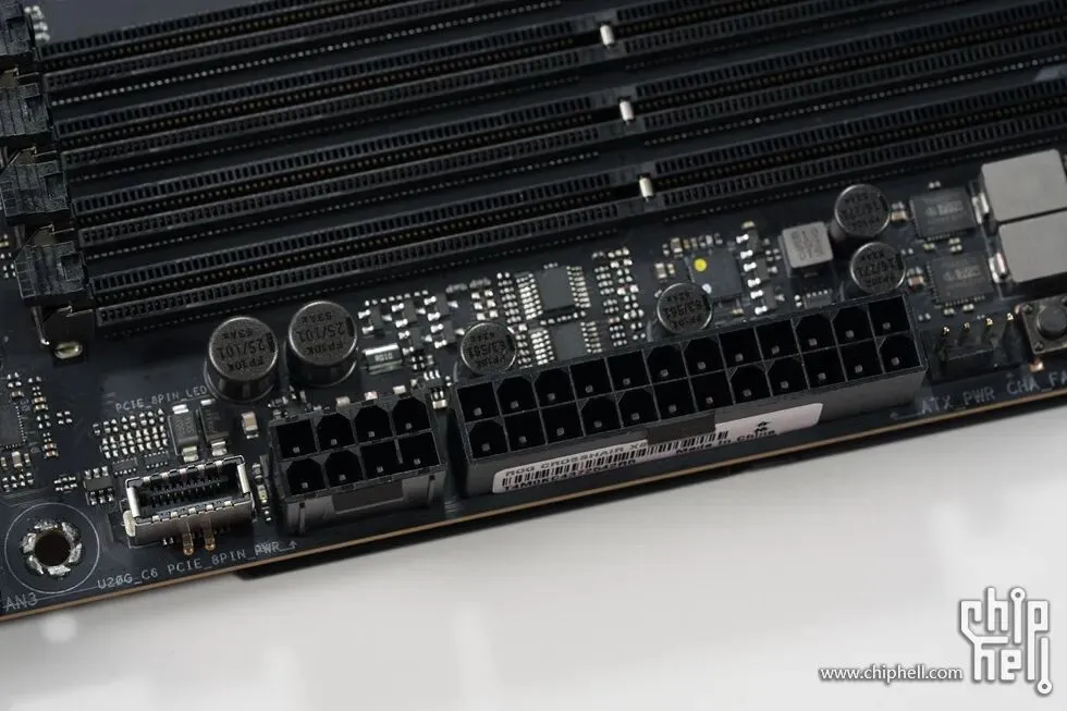 主板24Pin旁边提供额外8Pin输入,为前置TYPE-C接口提供快充供电能力