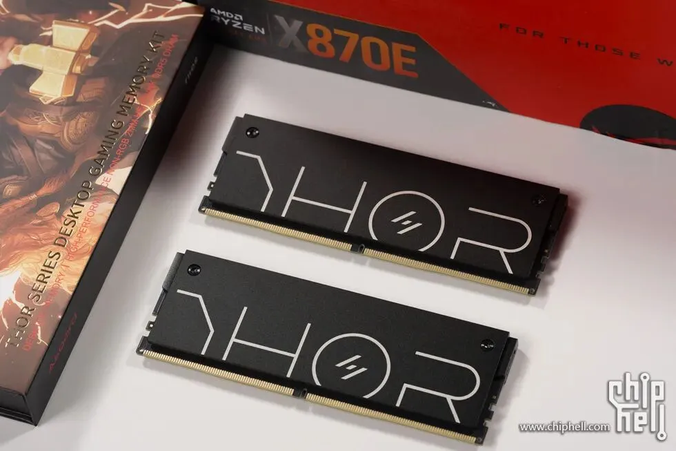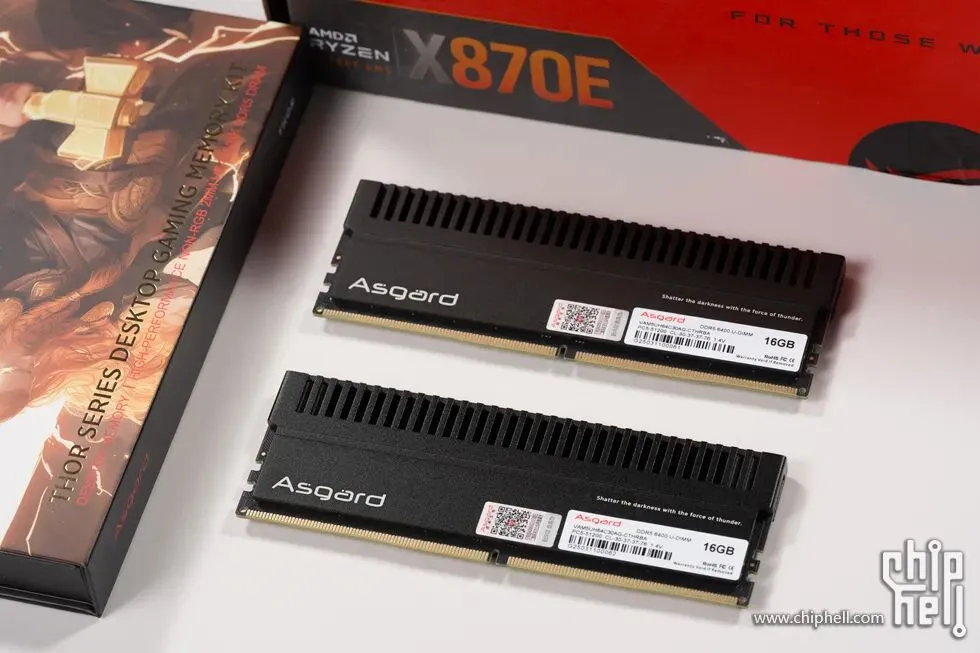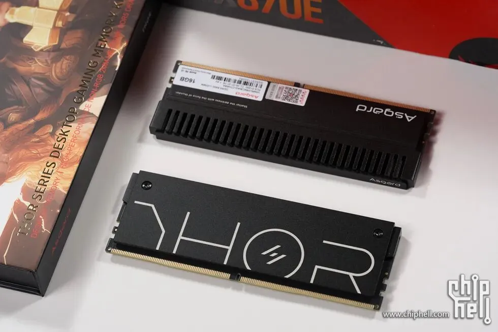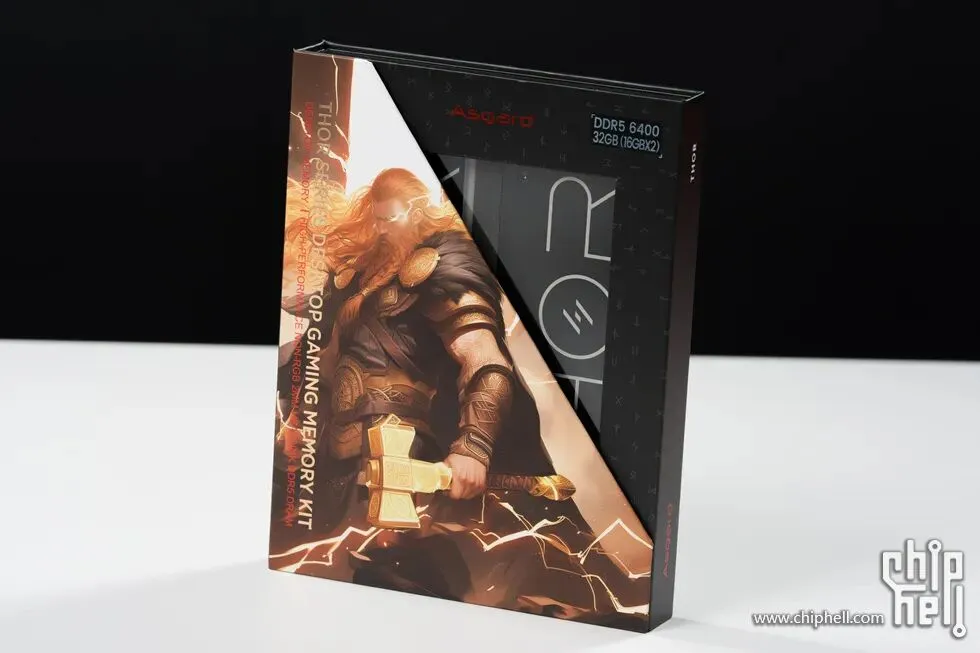 内存来自阿斯加特 雷神-索尔 6400 C30 32G套装,北欧神话故事来到了索尔篇,磁吸开合包装设计,桌面为雷神之子索尔人物刻画,右侧则是半露内存颜值以及频率容量信息