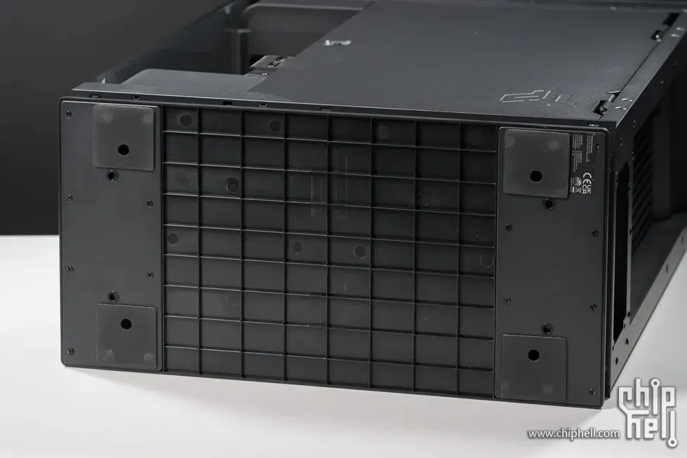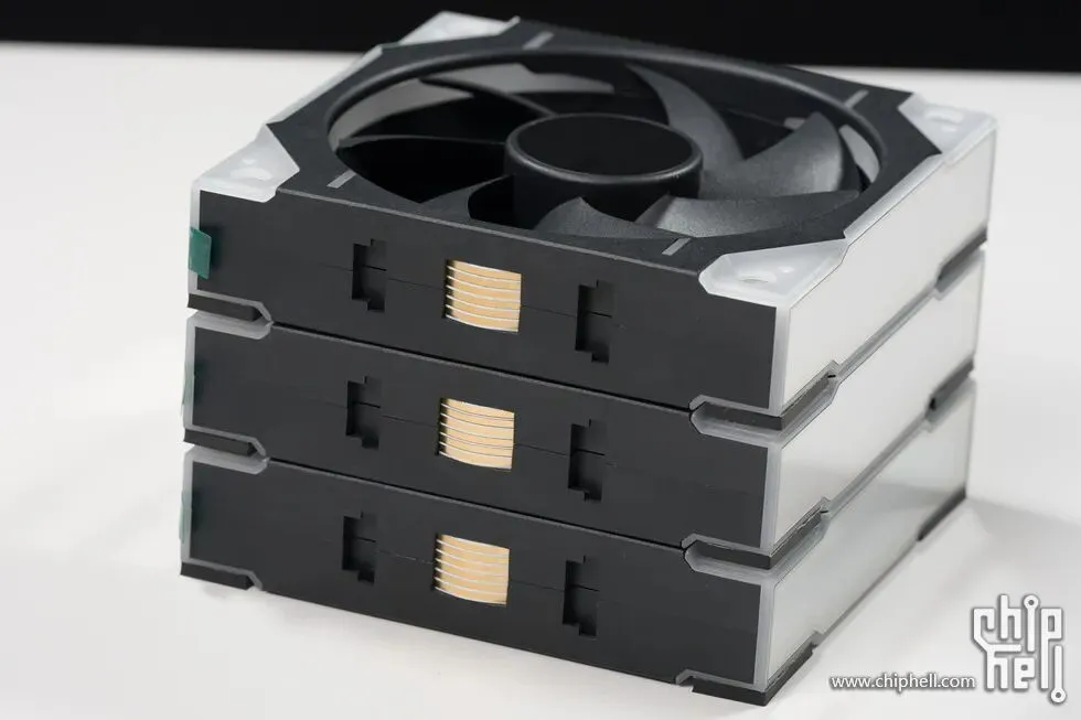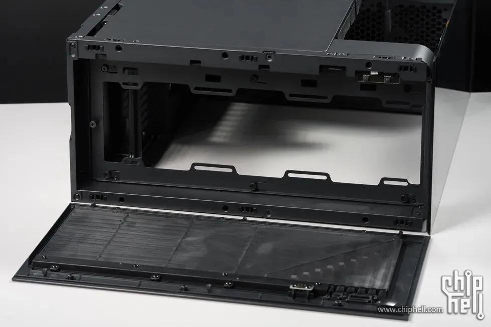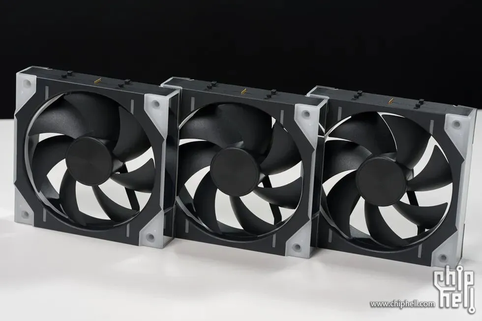底部可装3个120mm风扇,风扇为嵌入设计,风扇支架通过尾部一颗螺丝可拆出来方便安装风扇