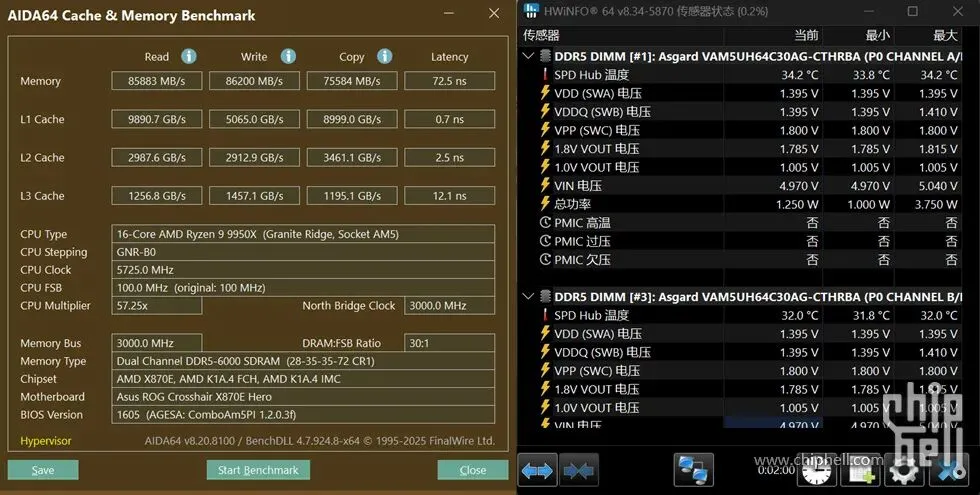 内存参数为:16G*2 6400 CL-30-37-37-76 1.4V