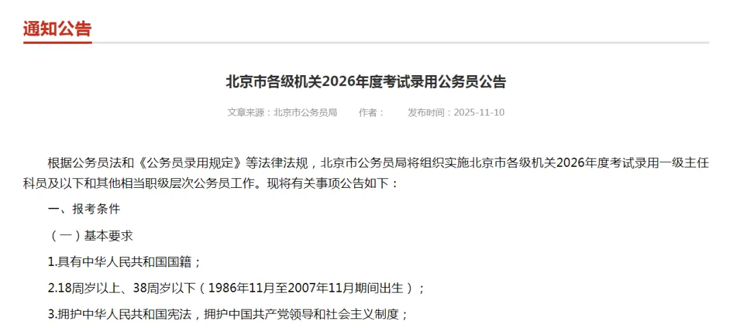 2027北京公务员考试公告预计将于11月初发布,招录人数在3000人左右,一般要求本科起报。
