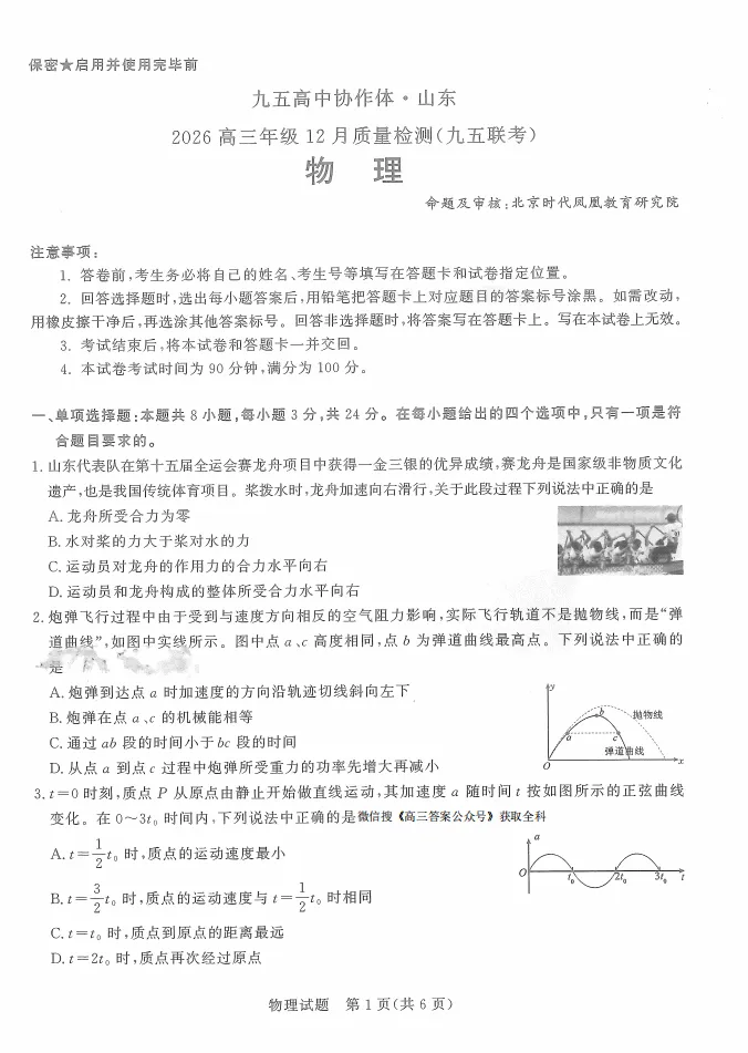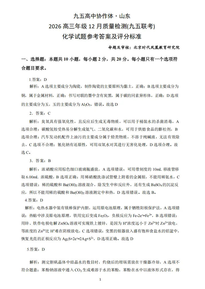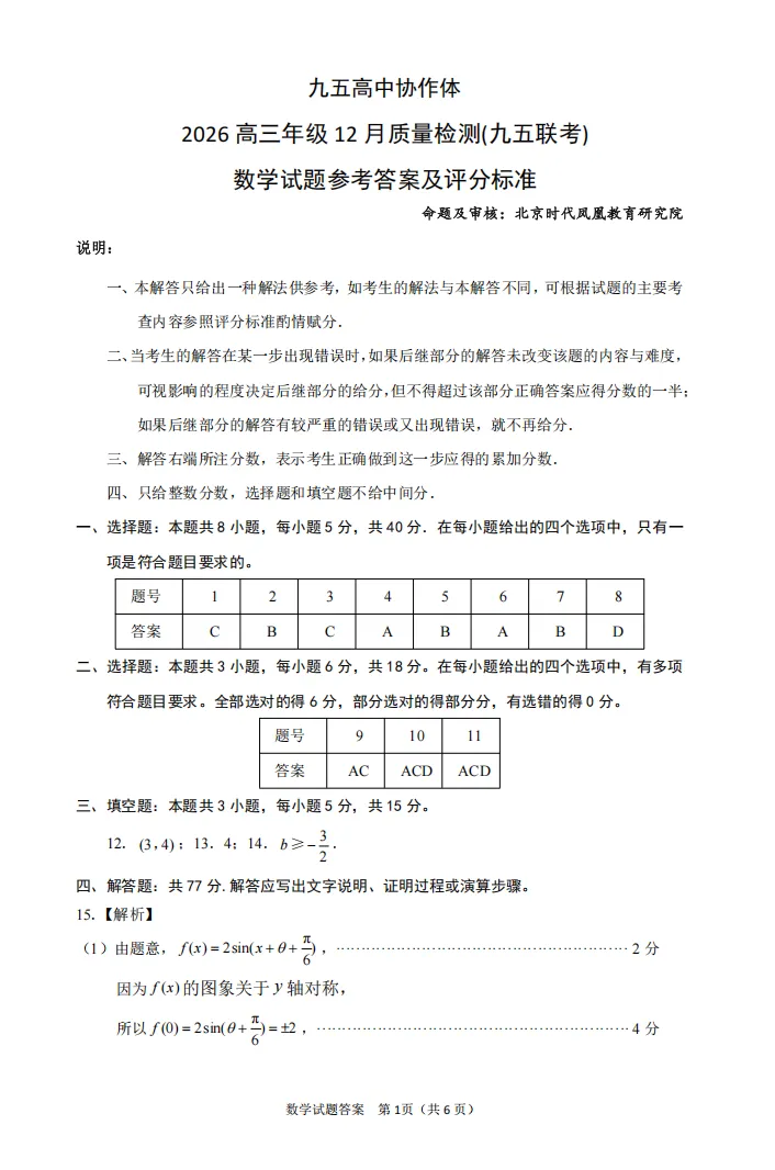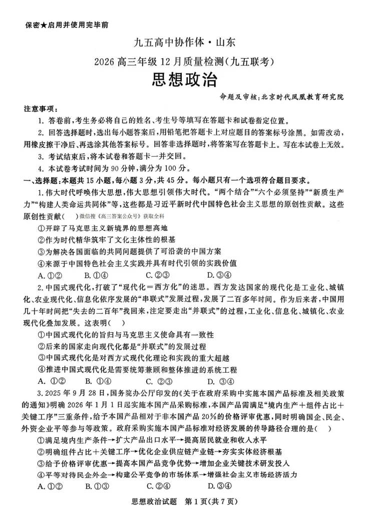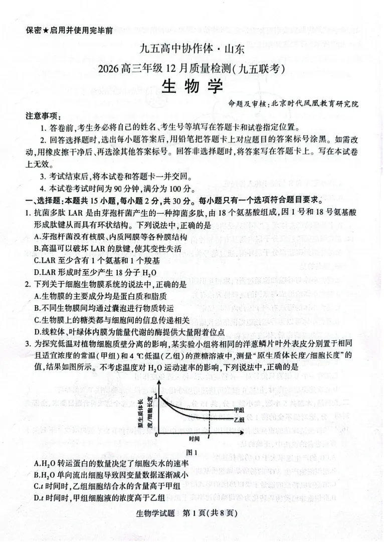 山东九五高中协作体2026届高三12月质量检测(九五联考)于近日开考!鲁考一点通考后更新数学、语文、英语、物理、化学、生物、历史、地理、政治试题及参考答案!供大家免费下载练习~