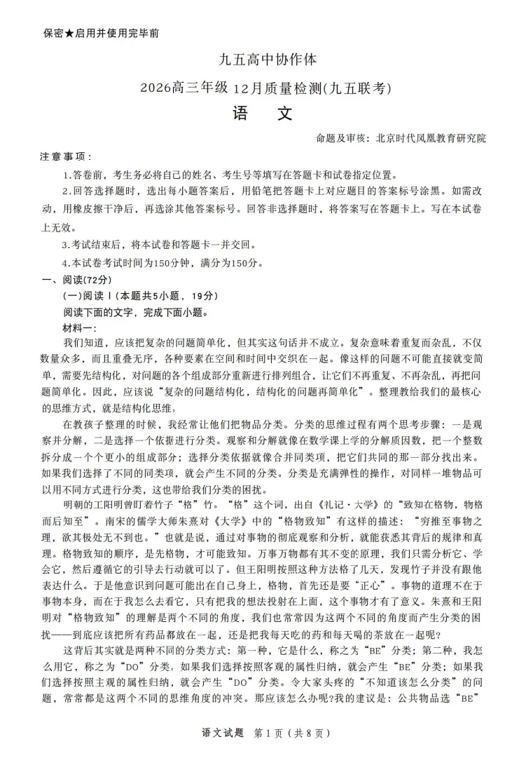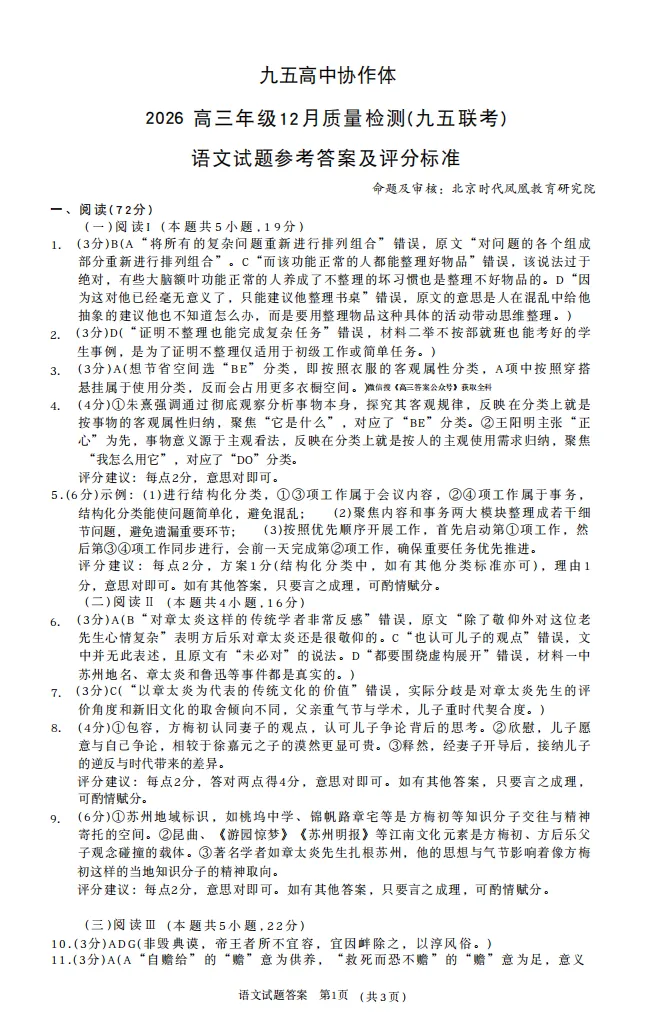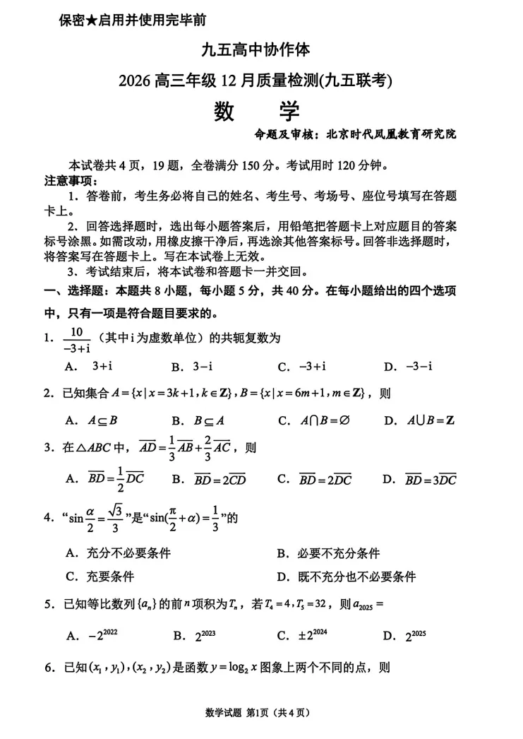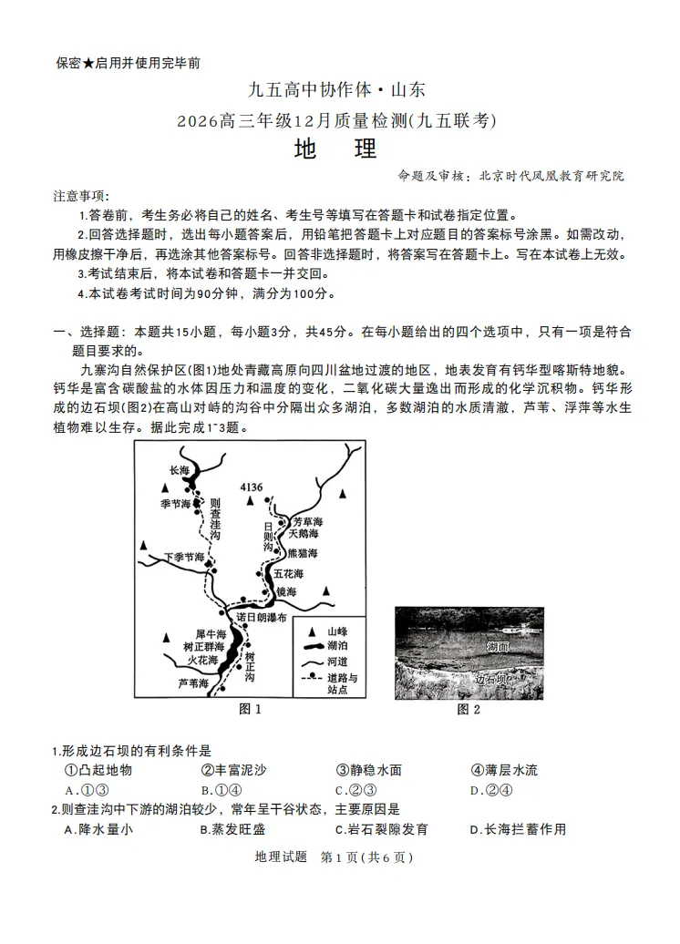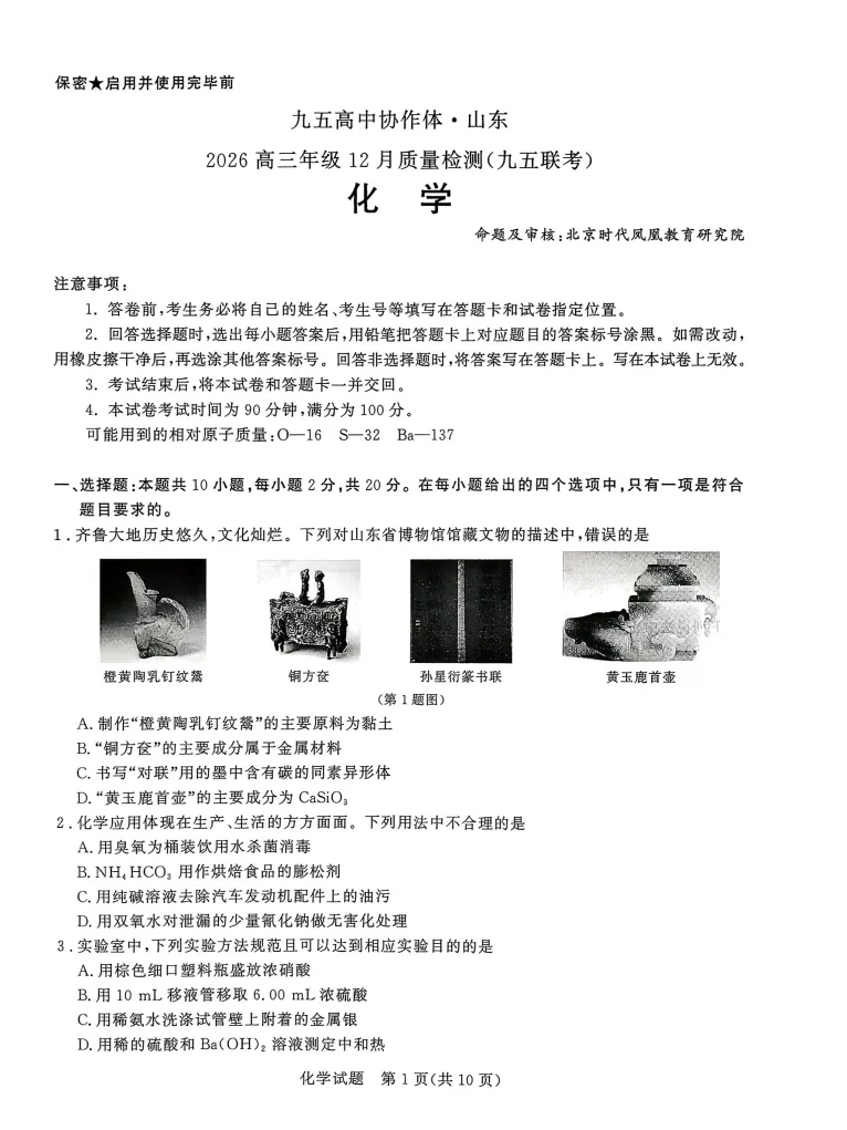 山东九五高中协作体2026届高三12月质量检测(九五联考)于近日开考!鲁考一点通考后更新数学、语文、英语、物理、化学、生物、历史、地理、政治试题及参考答案!供大家免费下载练习~