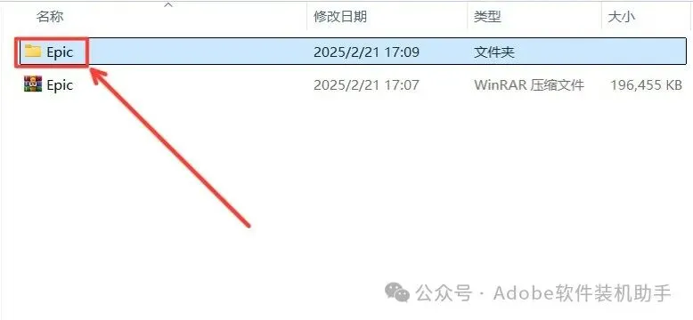 2.打开解压的【Epic】文件夹。
