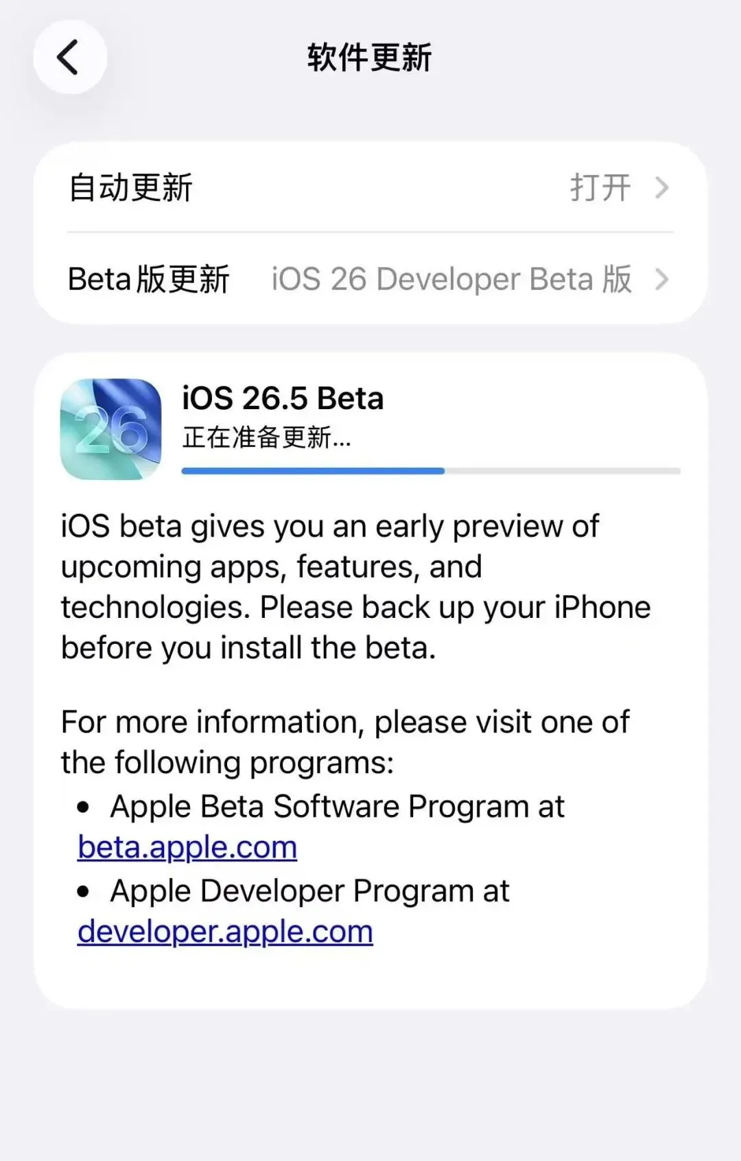 已经更新了 iOS 26.5(23F5043g)的小伙伴,可以更新这个版本,其他用户可暂时忽略更新。
