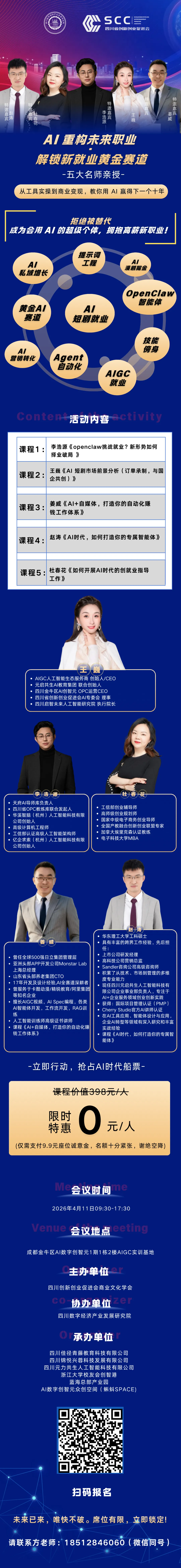- 活动地点:成都金牛区AI数字创智元1期1栋2楼AIGC实训基地
