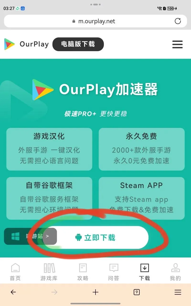 三、下载完毕以后直接默认安装并打开,首次打开以后,它会自动配置手机谷歌系统安装软件的环境。这儿再说明一下,用这个的好处是你不用再到处乱配置所谓的手机上谷歌系统的安装环境。如果不是高水平用户随便下载软件配置环境,有可能把系统自身环境破坏。Ourplay配置环境中的图片如下。