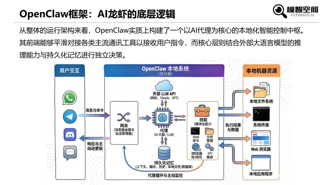 - OpenClaw 基础:开源本地 AI 操作系统,由奥地利程序员快速开发,GitHub 爆火,可桥接通讯软件与 AI 代理完成任务。